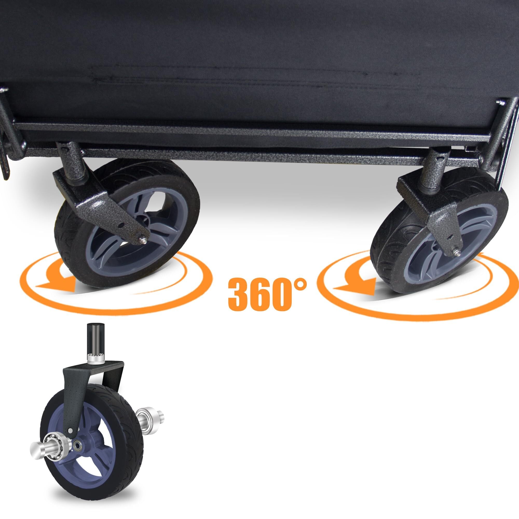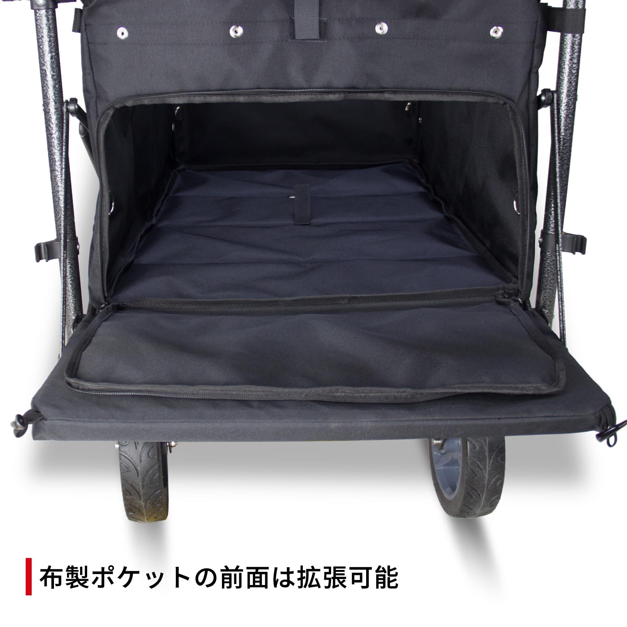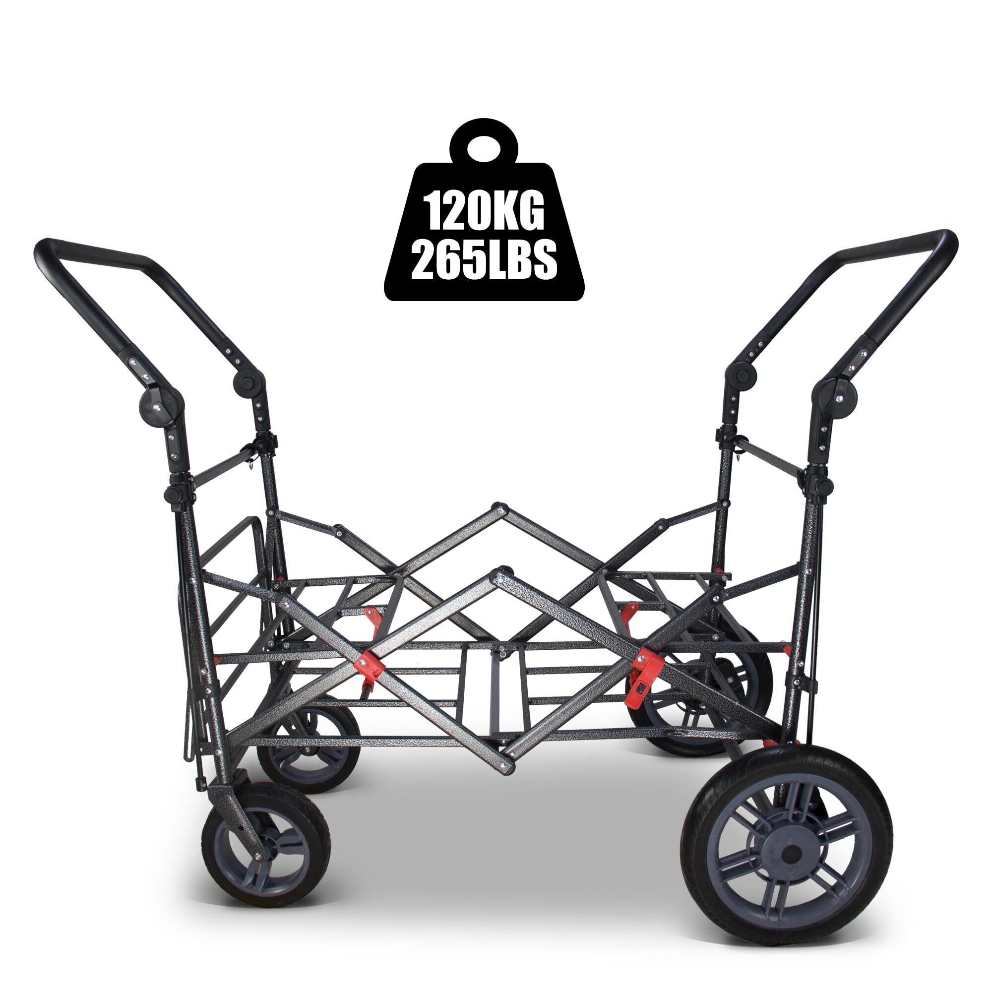 TMZ キャリーカート、折りたたみ式シート2つ付きキャリーワゴン、荷室拡張可能、前後ダブルプッシュハンドル、ブレーキ付きアウトドアワゴン 大容量 120kg高耐荷重 (ブラック)