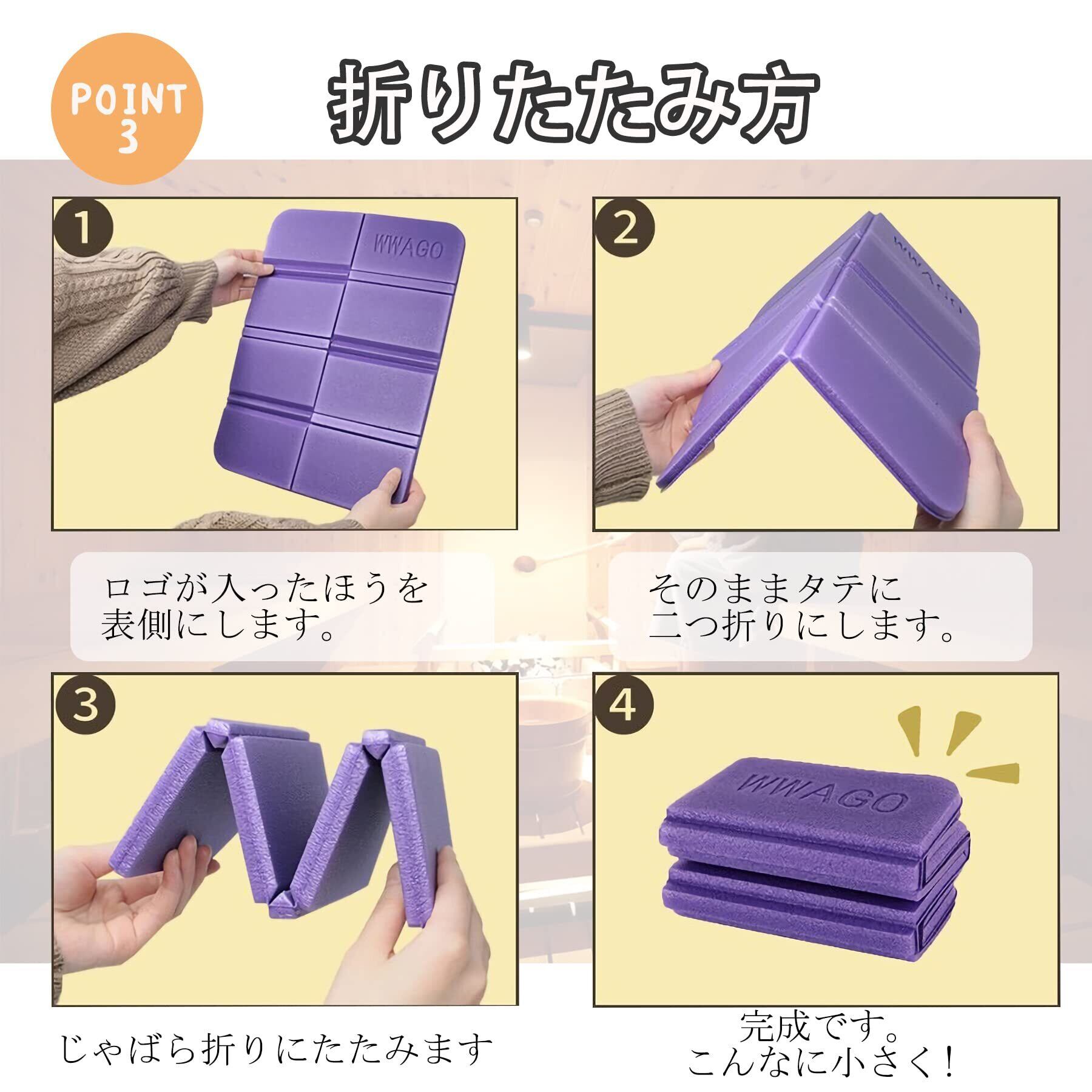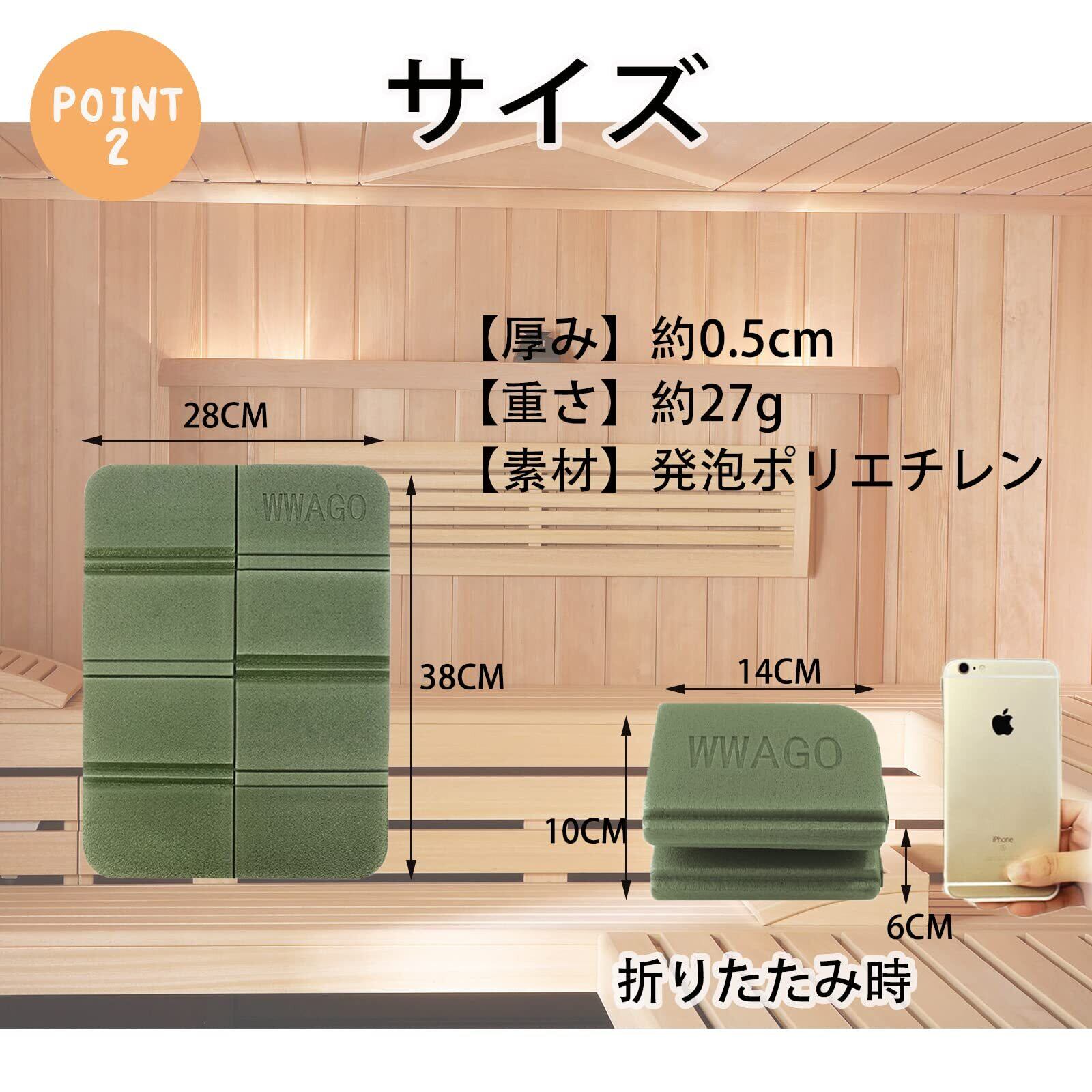 【持ち運び】汗が染みこみにくいのも嬉しいポイント。折り畳み式で手のひらサイズになるので持ち運びもラクラクです。清潔に使えて見た目もおしゃれなサウナマットを使ってぜひ整ってください!8つに折れば片手に収まるくらい小さなサイズになりますので、持ち運びするときにとても便利です。 ピクニック・スポーツ観戦・お花見・海水浴など、アウトドアに大活躍!
