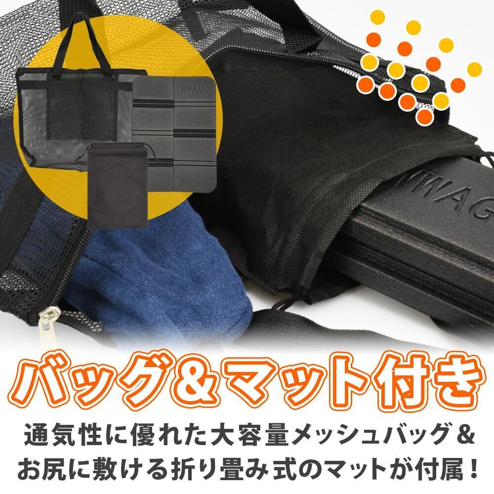 通気性に優れているメッシュバッグは濡れても乾きやすく、水回りでも気兼ねなくお使いいただけます。シャンプーやリンスなどのボトルも入れられる大容量設計です。防水仕様のサウナマットはコンパクトに折り畳めるため、持ち運びしやすいところもポイントです。