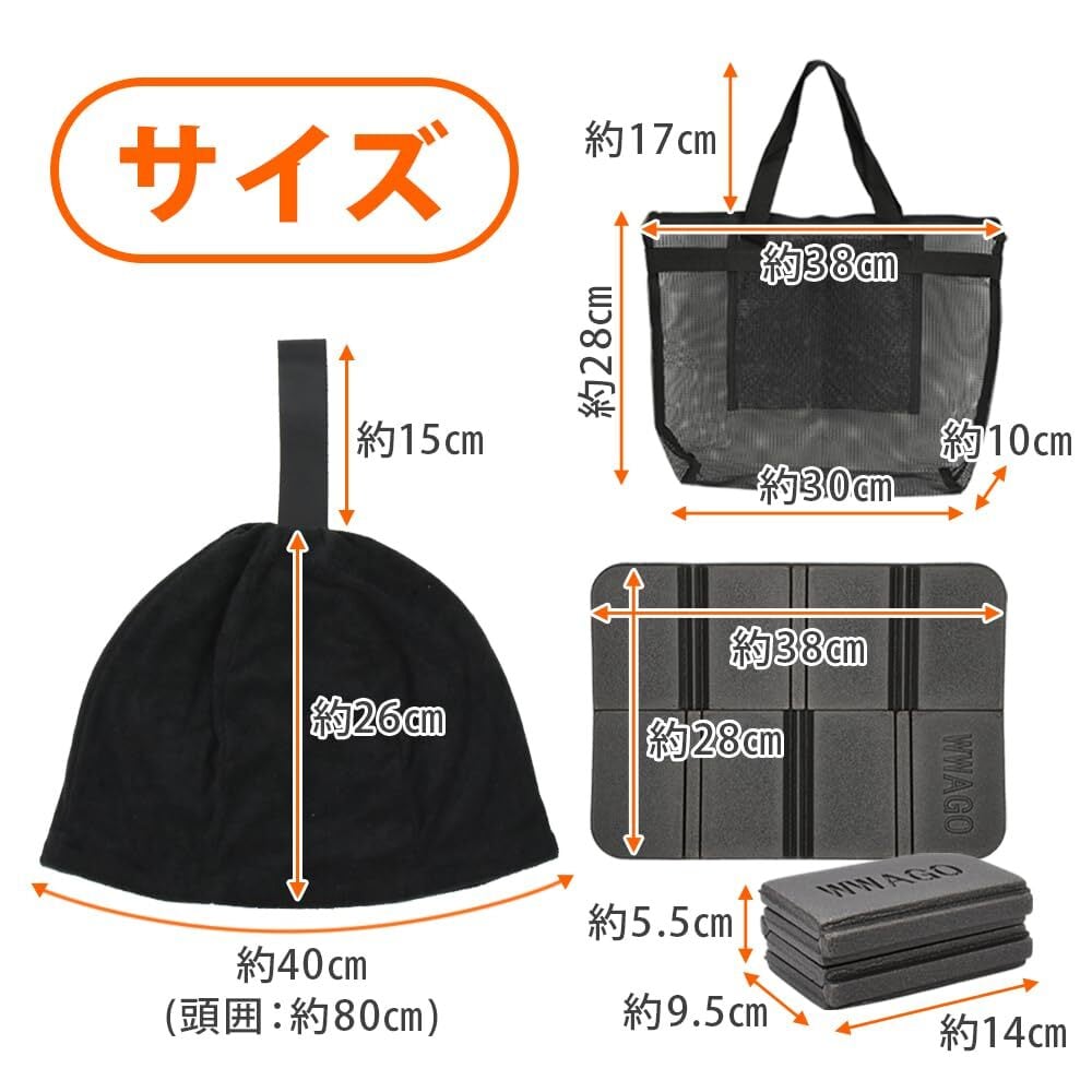 サウナハット 折り畳みマット メッシュバッグ 3点セット 頭皮保護 男女兼用 サ活 初心者