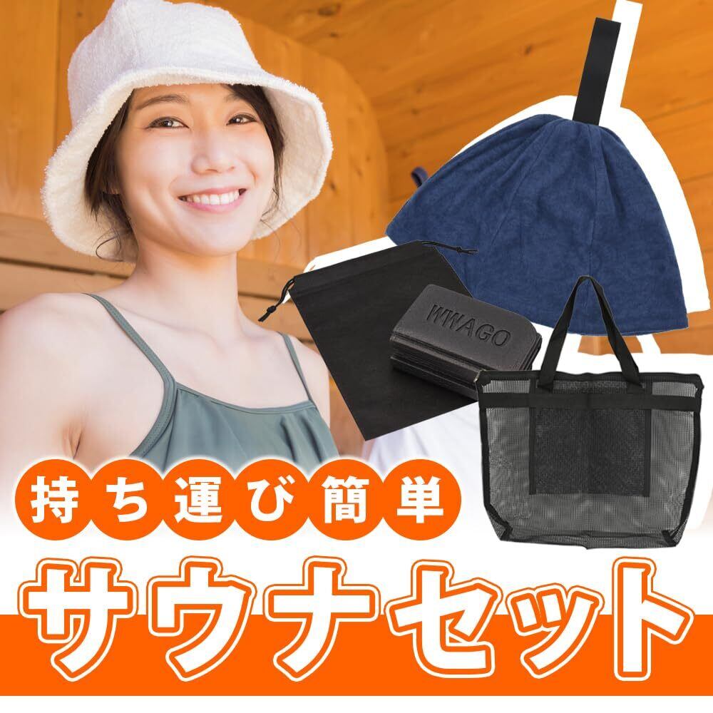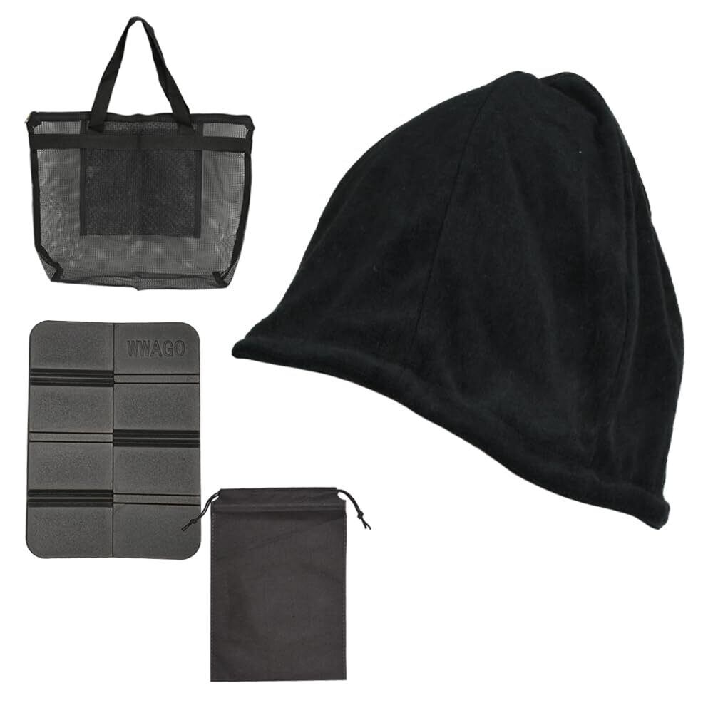 【新着商品】サウナハット 折り畳みマット メッシュバッグ 3点セット 頭皮保護 男女兼用 サ活 初心者