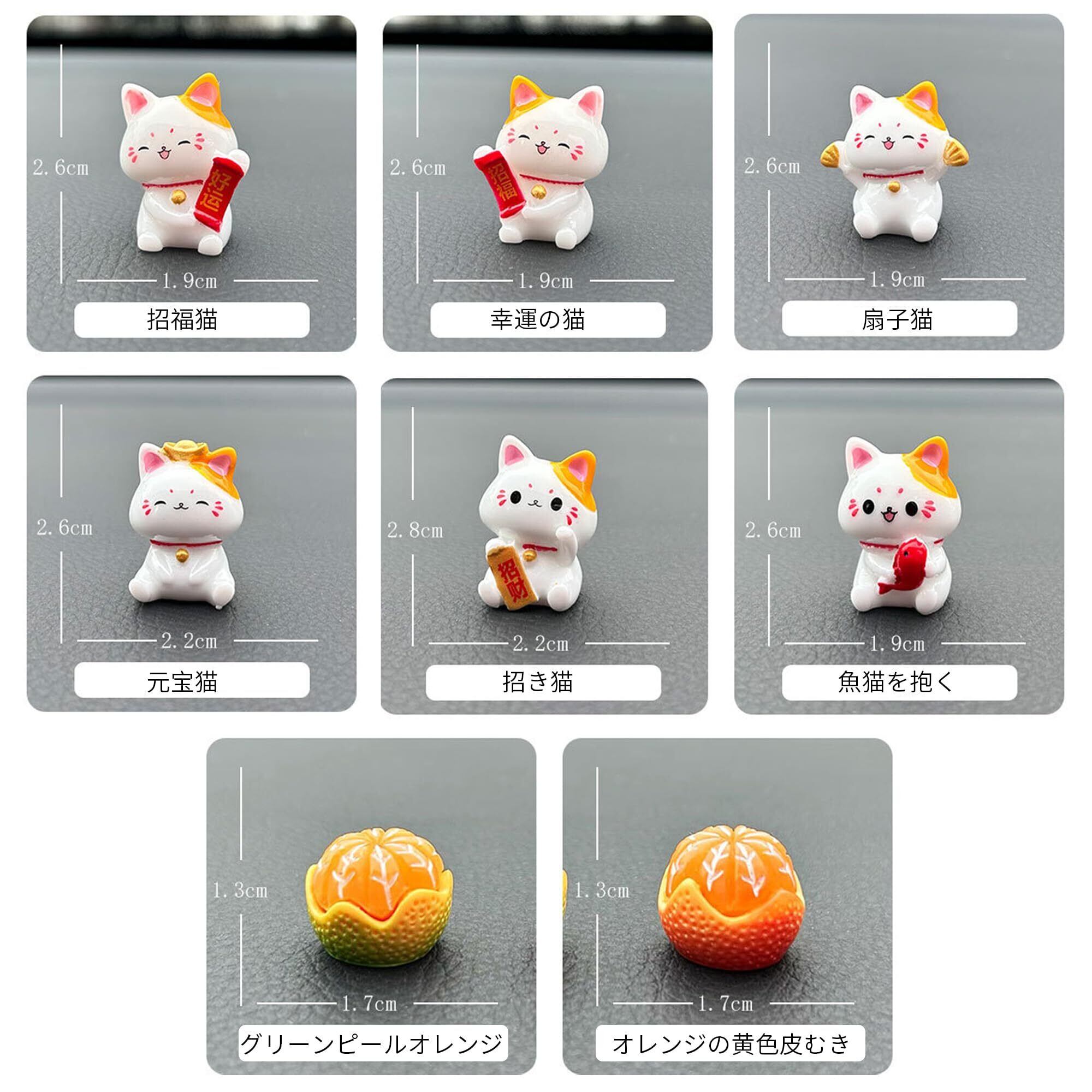 【デザイン】:ミニ招き猫6匹入【サイズ】:高さ約2.6~1.9 cm
