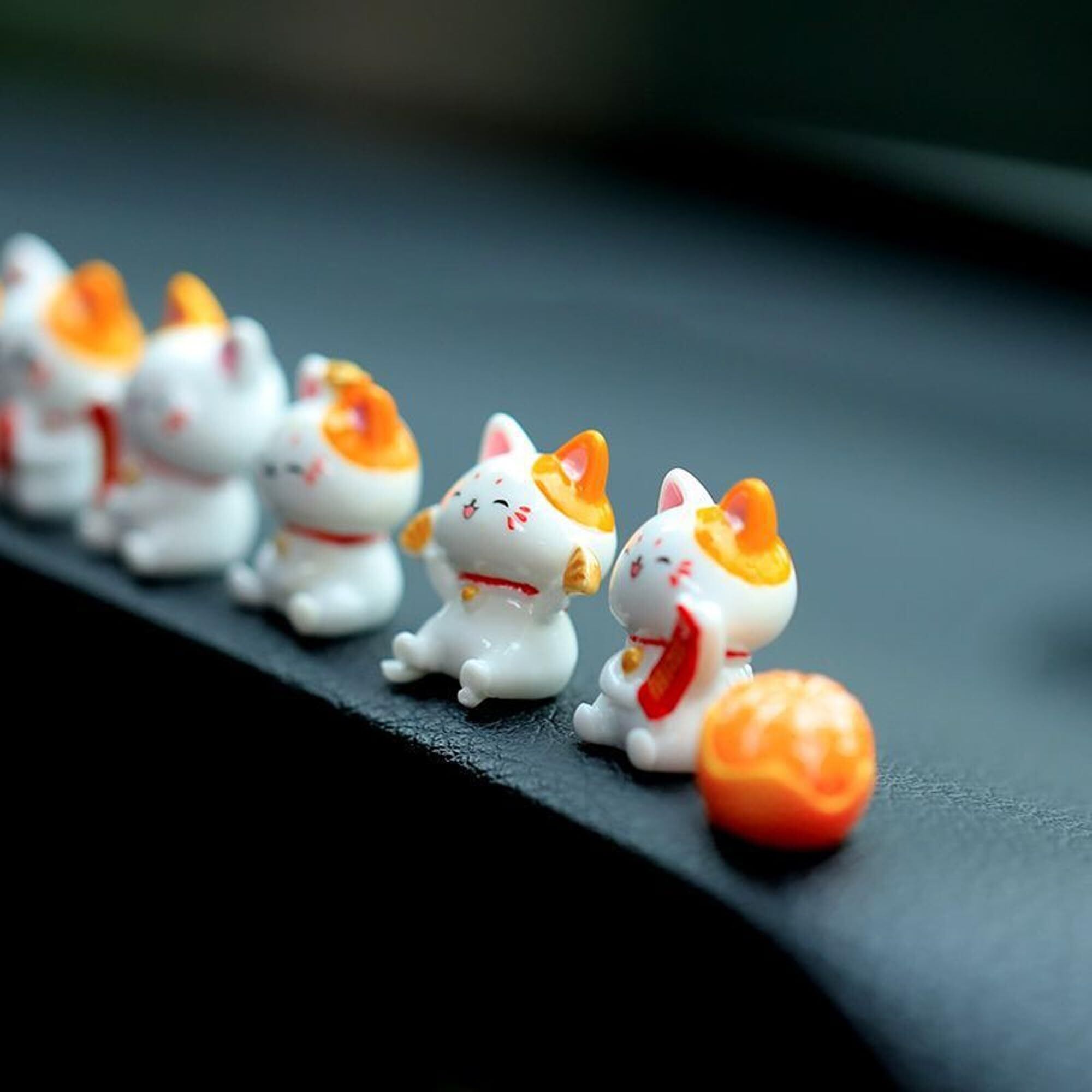 6PCS 車の装飾品 招き猫 装飾 かわいい DIY 室内装飾 樹脂 ミニ招き猫6匹入