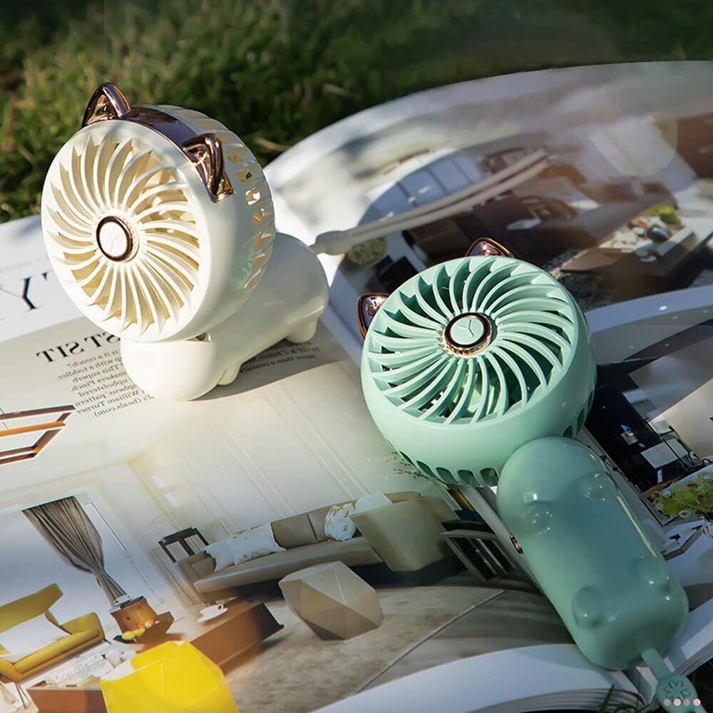 【折りたたみ可能&手持ち・卓上両用】この携帯ファンは折りたたみ式なので、手持ちでも卓上でも、異なるシーンの使用ニーズに合わせてさまざまな方法で使用できます。ロングハンドルのデザインで、持ち運びにとても便利です。折りたたんで机の上に置いて使うと、猫のイメージがあり、とても可愛くて癒されます。いつでもどこでも快適に涼しさを楽しむことができます。