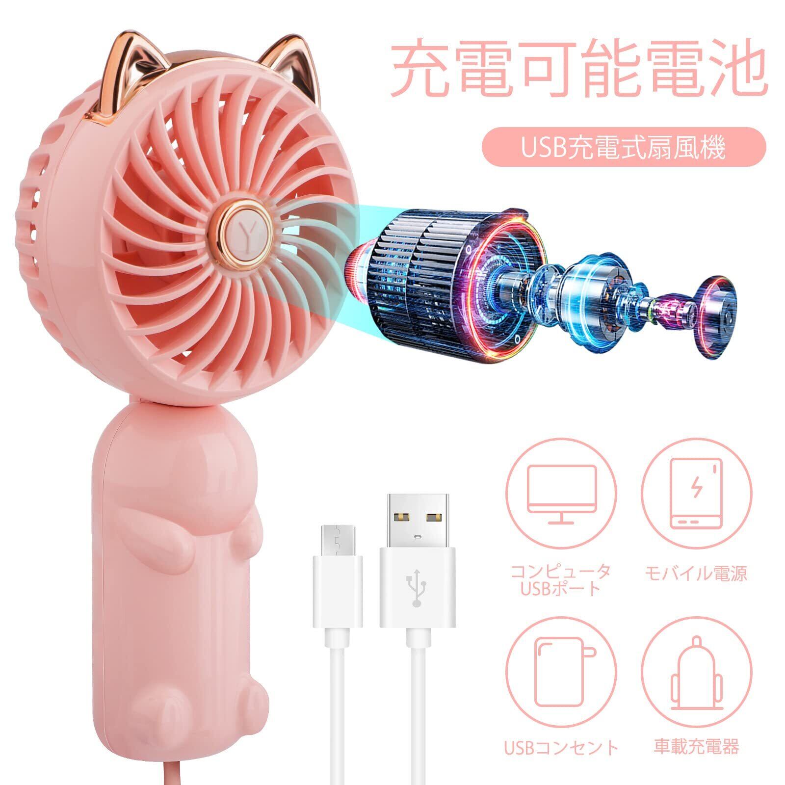 【かわいいUSB充電式扇風機目立つ猫耳付き】JYPSのミニ携帯ファンはかわいい猫耳デザインを採用し、子供、青少年、女の子、女性への必須の旅行アクセサリープレゼントです。14500リチウム電池を内蔵し、2~3時間充電し、2~4時間動作し、持ち運びに非常に便利です。注意:ハンディ扇風機はUSB充電タイプで、モバイル電源やパソコンで充電できます。 本製品は推奨のUSB充電器のみ、おもちゃ類のUSB充電器は使用できません。