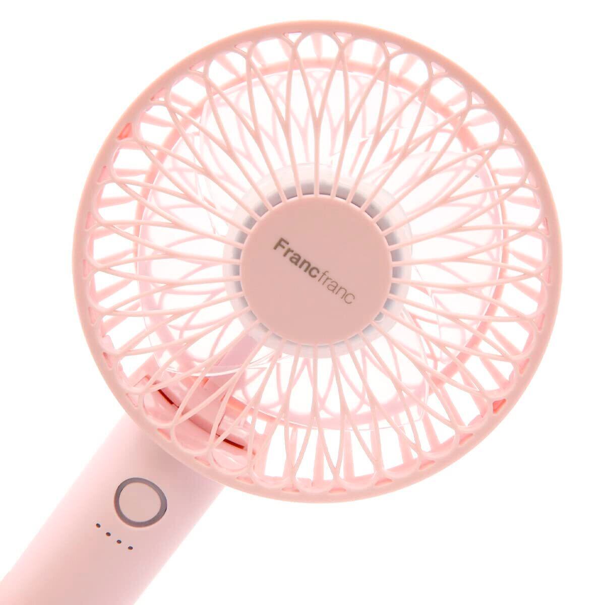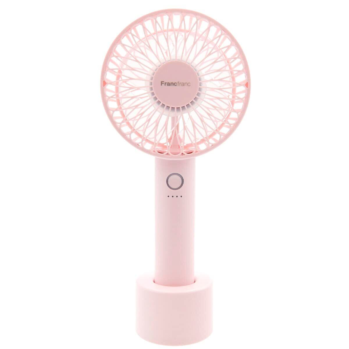 ハンディファン 扇風機 フランフラン ハンディファン ライト ~Francfranc FRAIS HANDY FAN LITE~ 手持ち USB 充電スタンド 軽量 充電式 携帯 (ピンク)