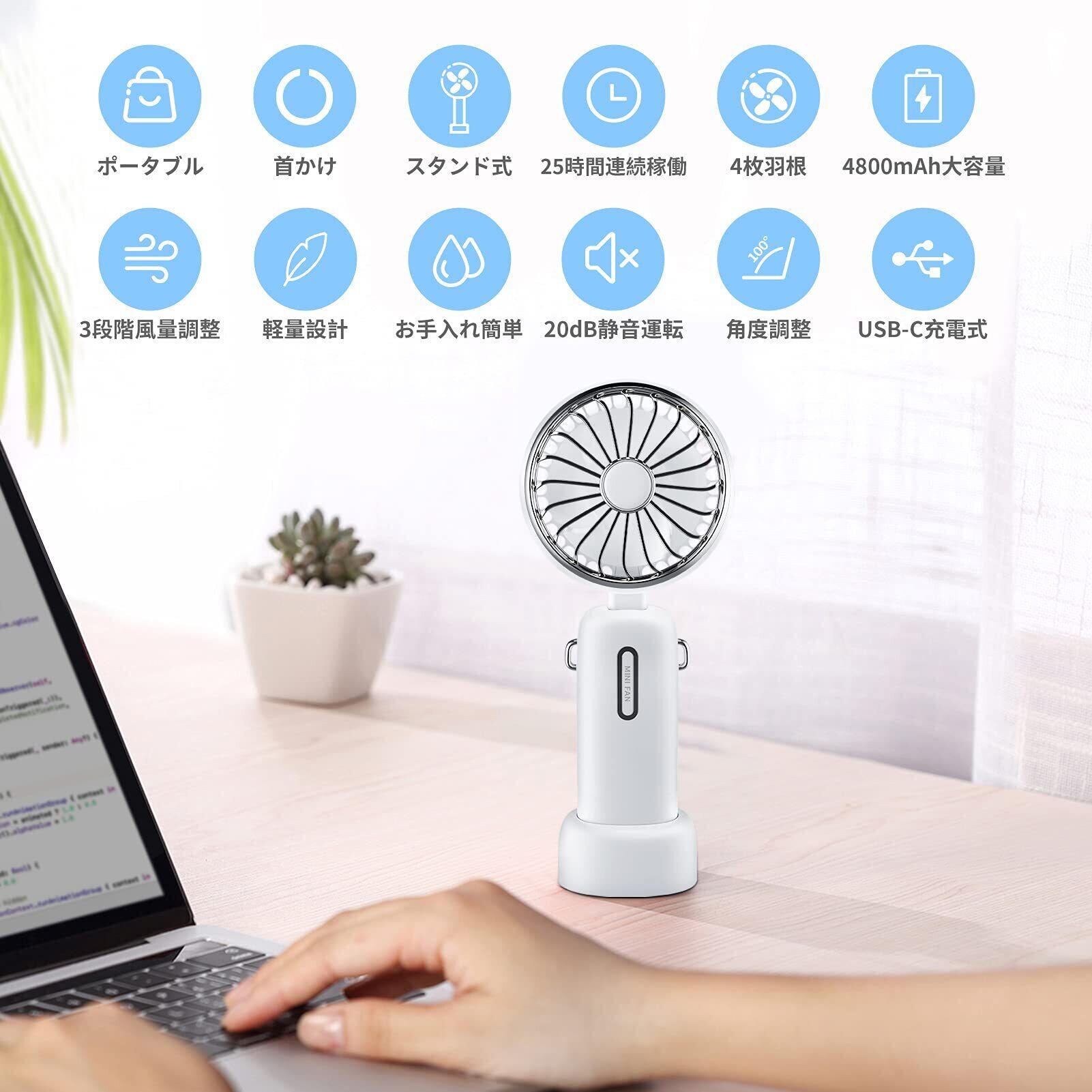 手持ち扇風機 FS-WF ハンディファン携帯扇風機 風量3段階調節 20dB低騒音 4800mAh大容量 最長25時間連続稼働 usb充電式 熱中症対策 軽量で便利 会社 学校 屋内 通勤通学 アウトドア