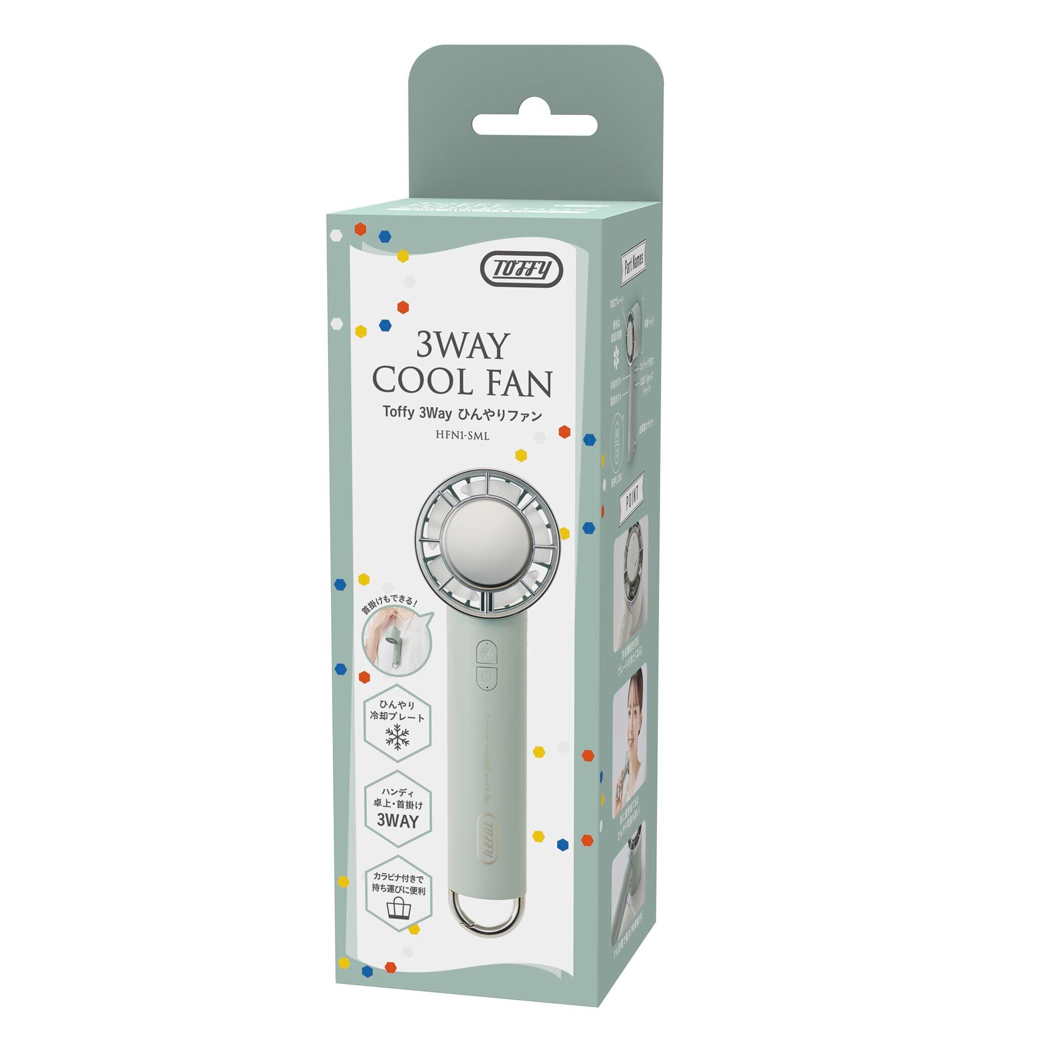【Toffy/トフィー】 3Way ひんやりファン HFN1 カラビナ付き 最長7時間稼働 ハンディ 卓上 スタンド 首掛け 冷却プレート付き HFN1 (スモーキーリーフ)