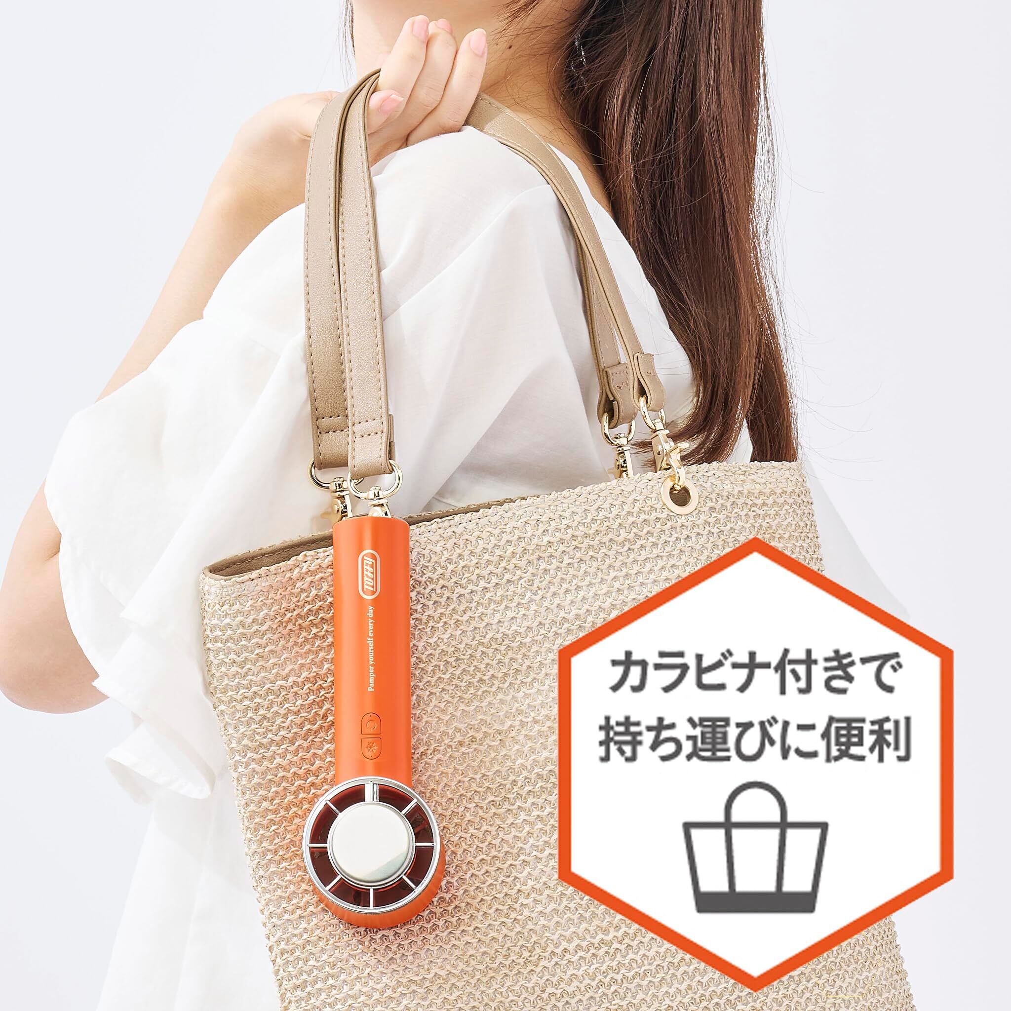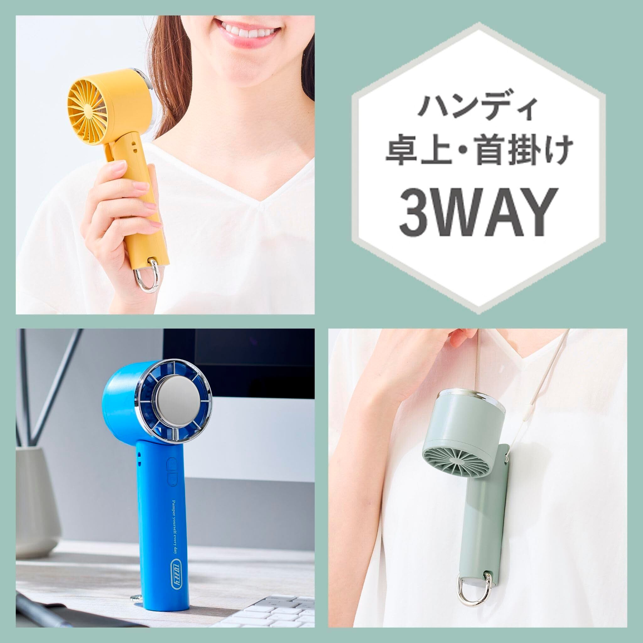 首掛け 首掛けストラップが付属。 ヘッドが動くから、狙った位置に風を送れます!