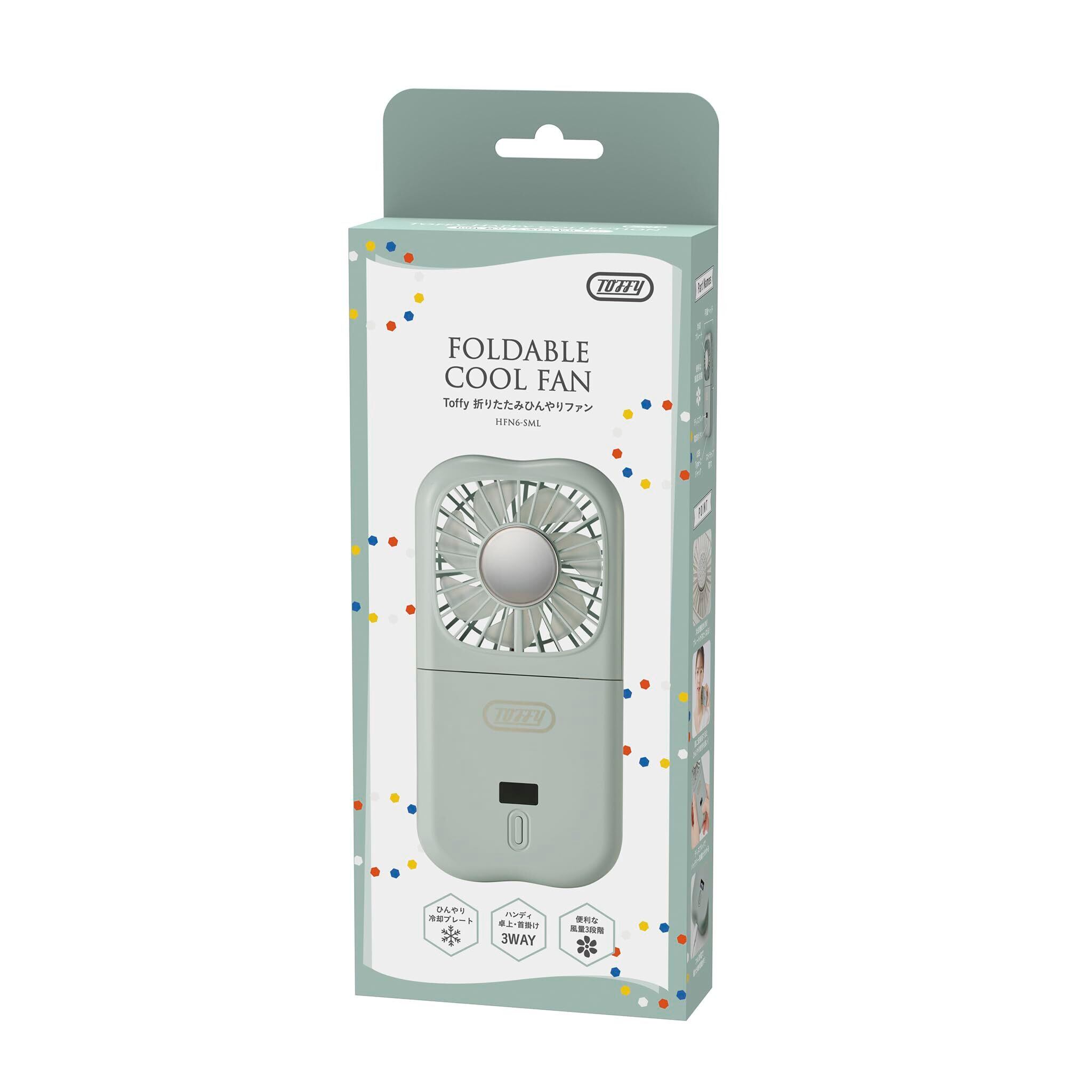 【Toffy/トフィー】 折りたたみひんやりファン HFN6 ハンディファン 冷却プレート付き コンパクト 3WAY ハンディ 卓上 首掛け ディスプレイ付き カラバリ豊富 HFN6 (スモーキーリーフ)