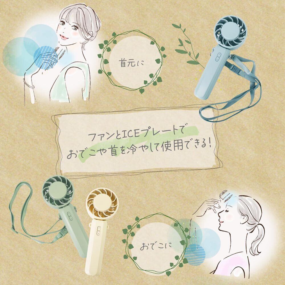 ICEカラープレート付ハンディファン (ライトグリーン) ギフト プレゼント 冷却プレート 卓上扇風機 小型扇風機 携帯扇風機 ペルチェ