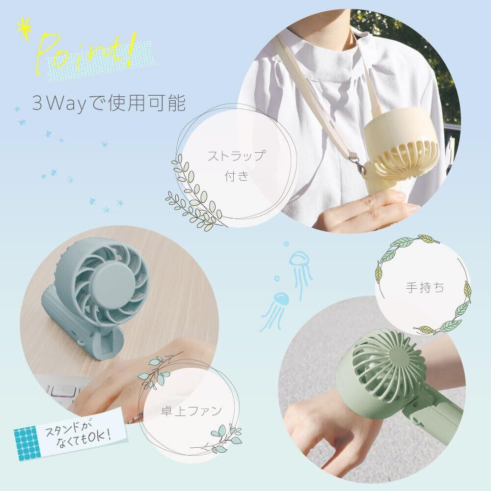 3WAY設計: ハンディファン、ストラップ付き携帯扇風機、卓上ファンとして使用可能な多機能デザイン