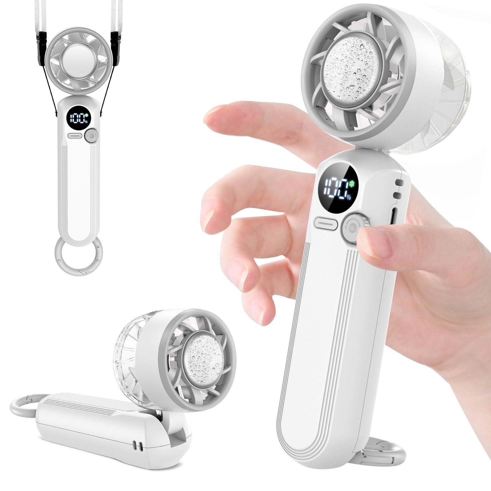 ハンディファン 冷却プレート付き 1秒冷感 100段階パワフル風量 首掛け/卓上/手持ち/腰掛け カラビナとストラップ付き 最長12h稼働 超軽量160g 携帯扇風機 小型 静音 2h急速充電 手持ち扇風機 小型扇風機 母の日プレゼント 父の日のプレゼント