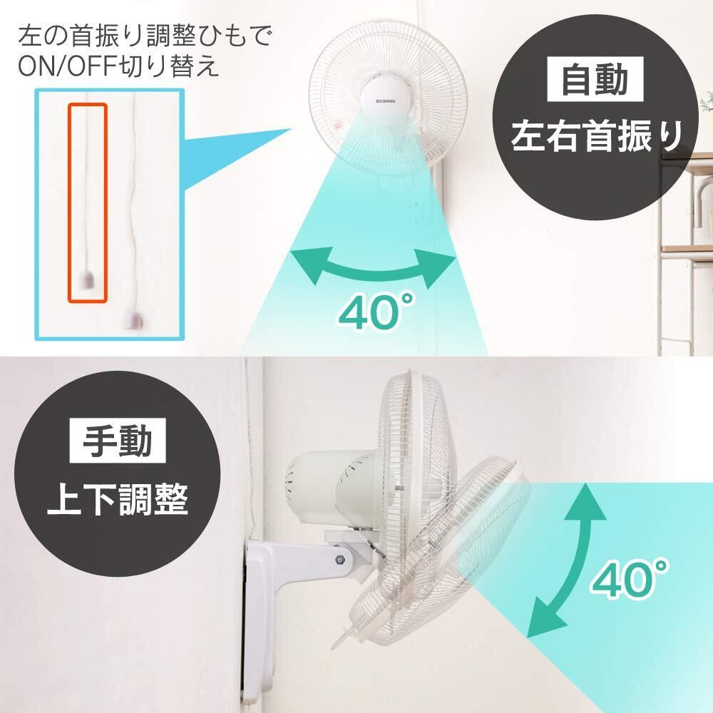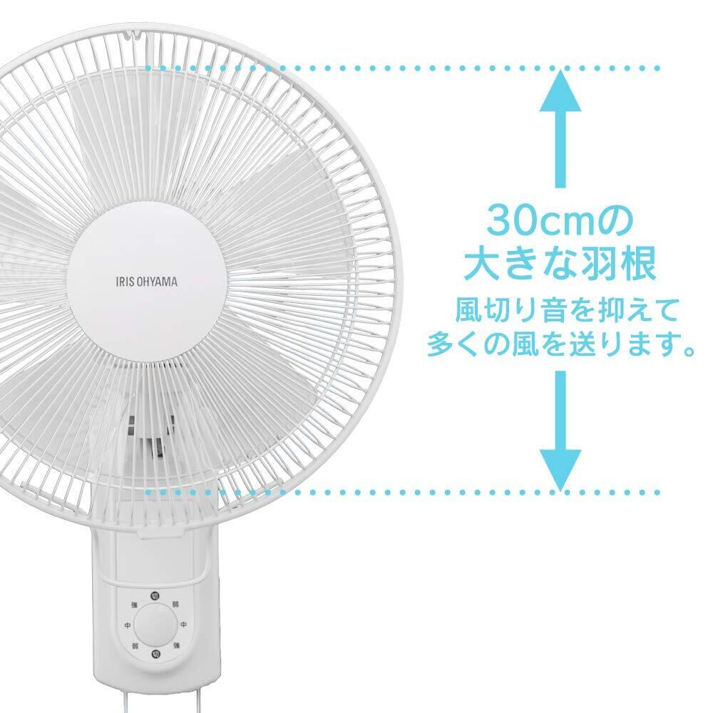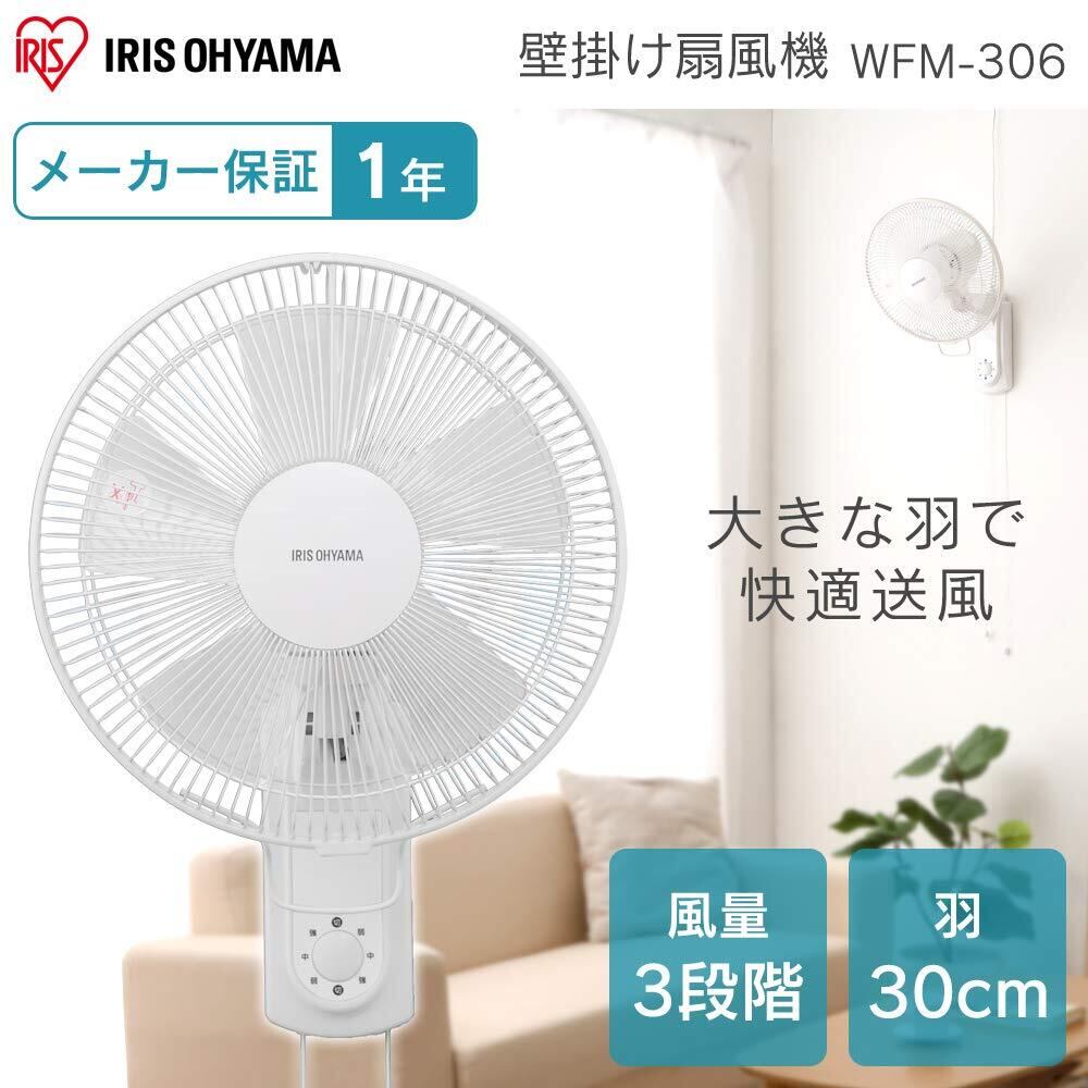 アイリスオーヤマ 扇風機 壁掛け 首振り 風量3段階 メカ式 ホワイト WFM-306