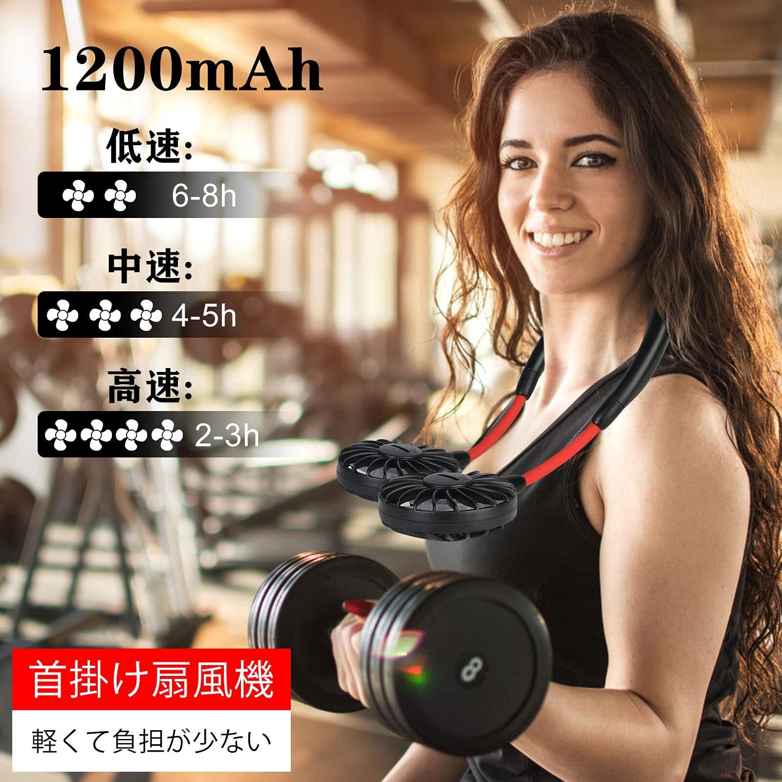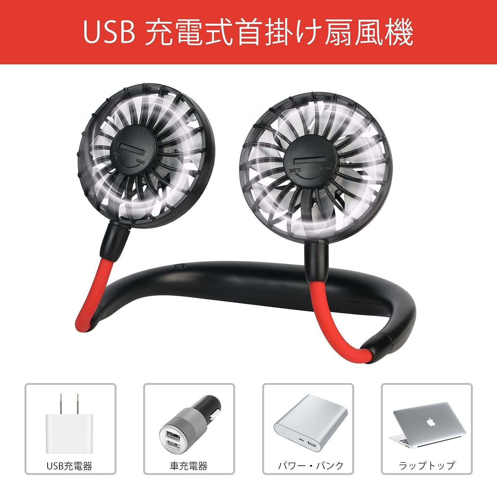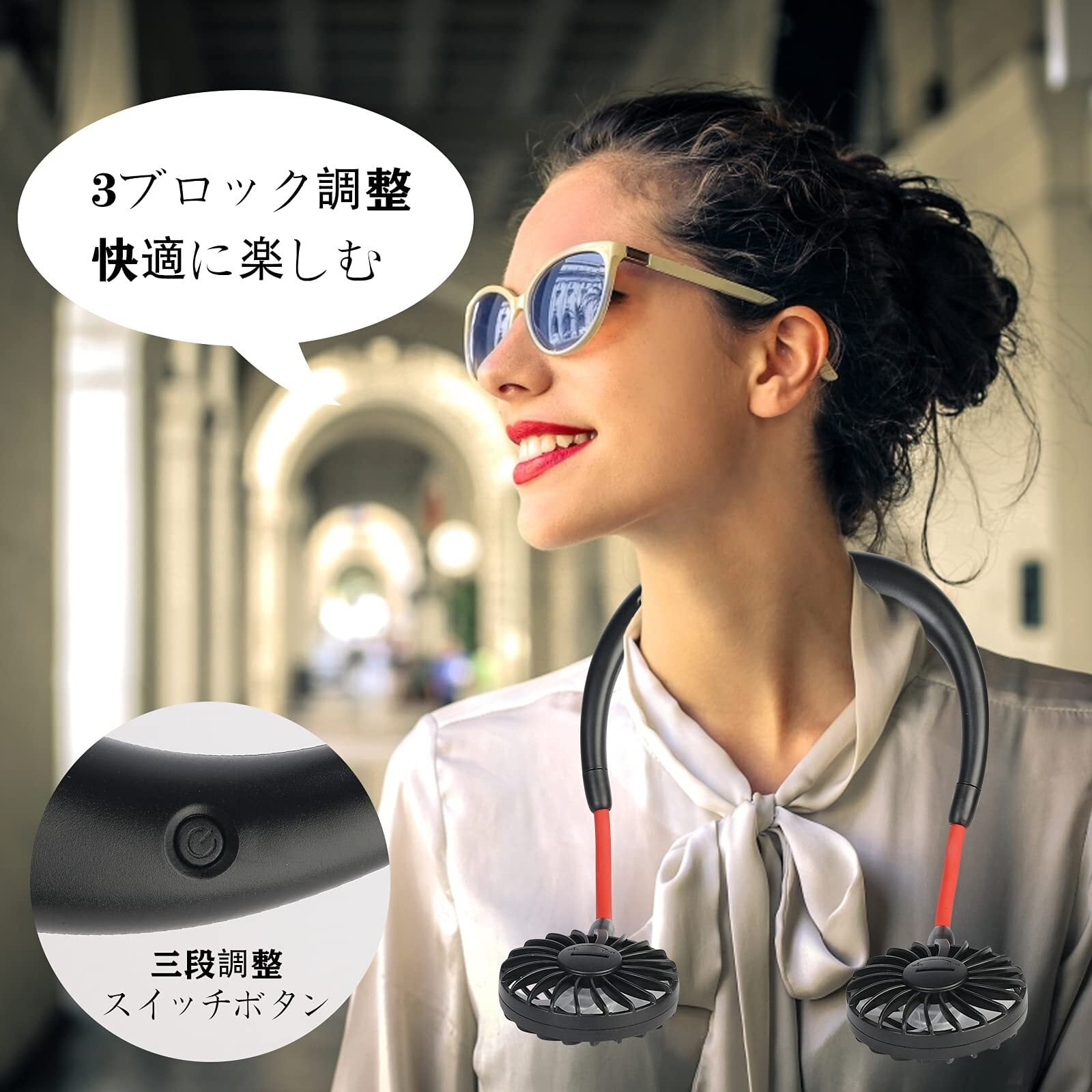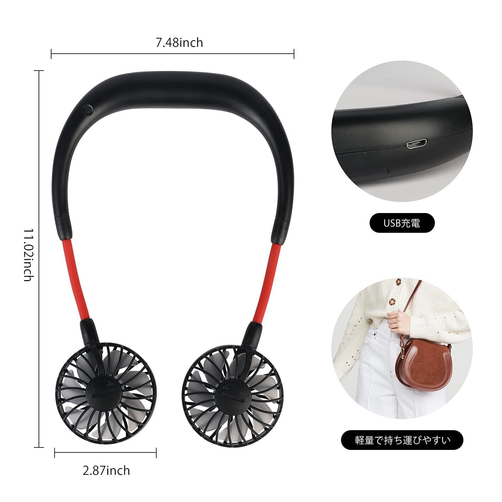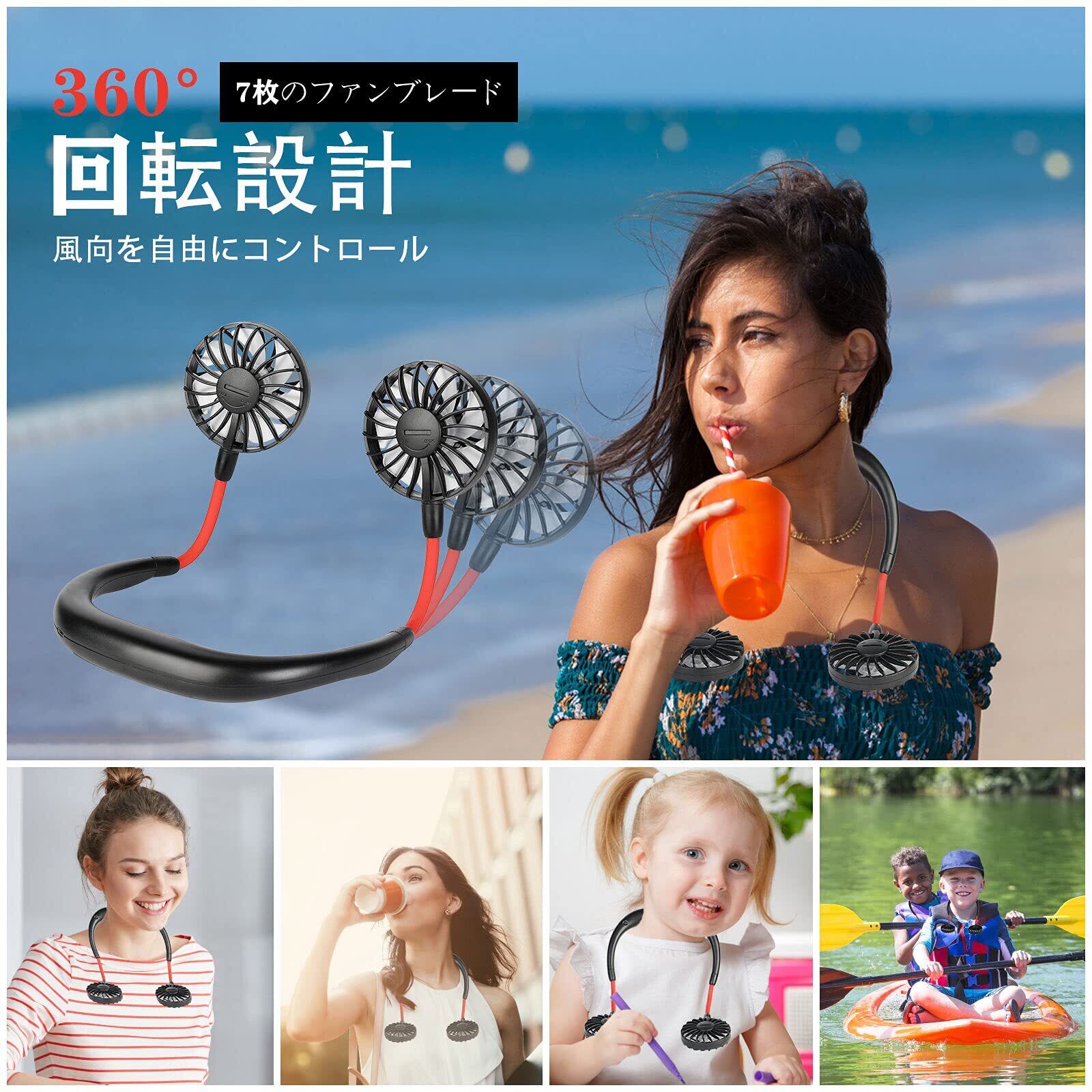 首掛け扇風機 usb充電式 携帯扇風機 風量3段階調節 360°角度調整扇風機 屋外作業・旅行に最適ネッククーラー大容量静音首掛け扇風機