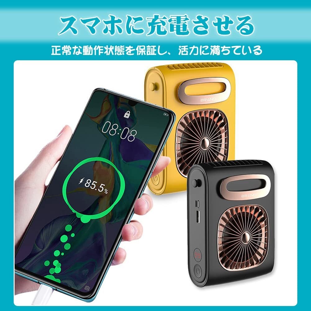 3in1ポータブルファン:ウエストクリップとネックハンギングデザインで、仕事やアウトドア旅行に最適で、体を冷やして汗を取り除きます。もちろん、停電の時に、スマホに充電させることができます