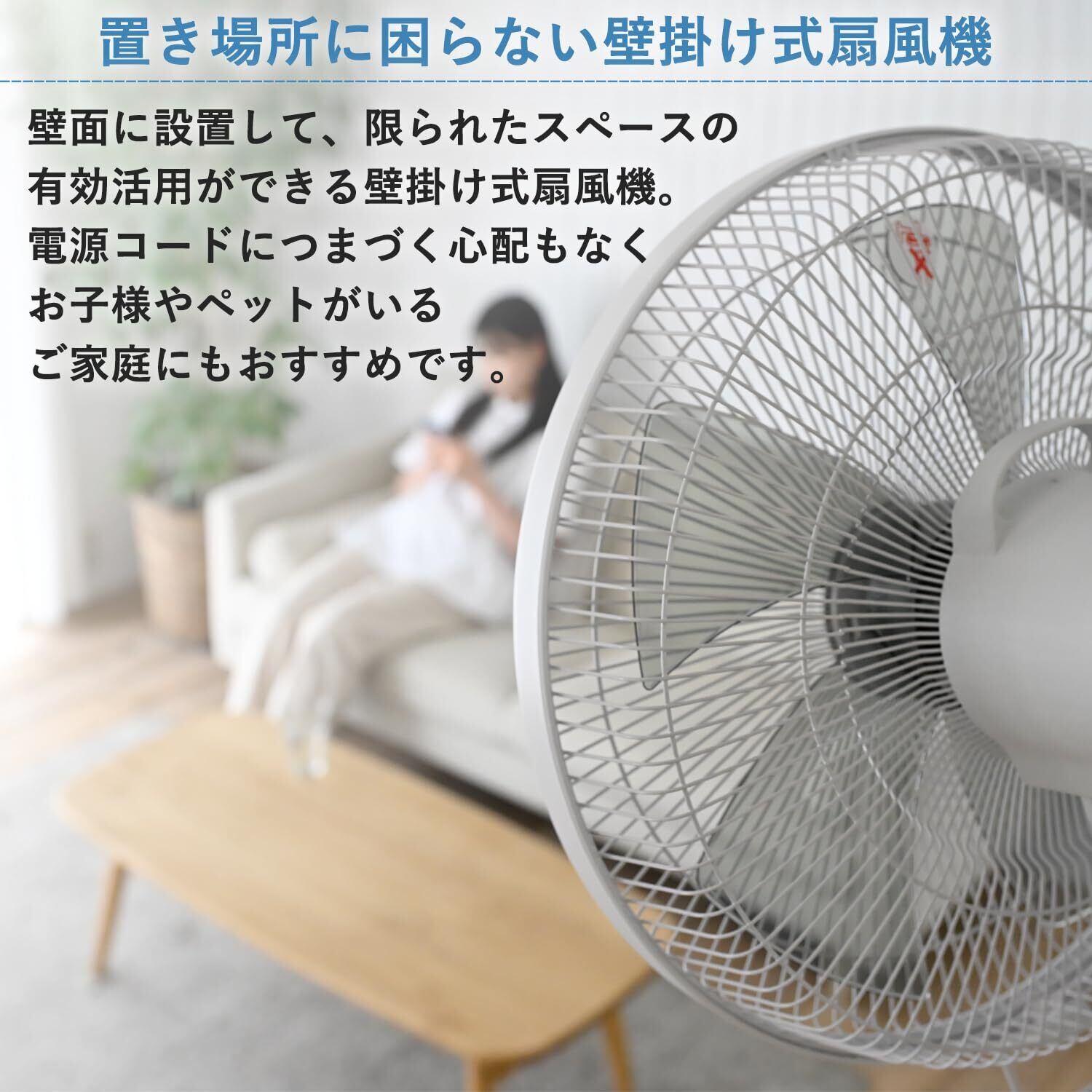 ●壁面に設置して、限られたスペースの有効活用ができる壁掛け扇風機。