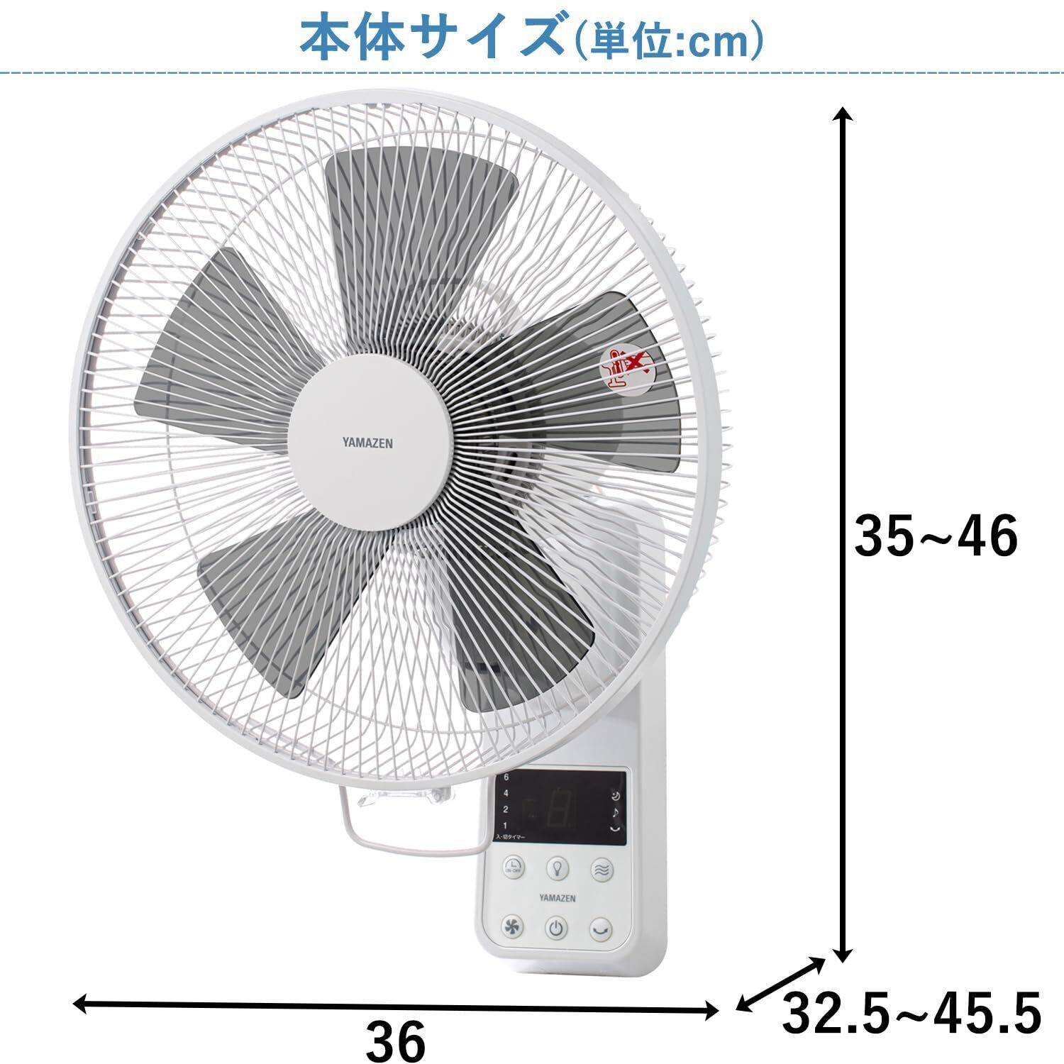 [山善] 壁掛け 扇風機 左右自動首振り (換気/空気循環) 風量調節3段階 入切タイマー おやすみモード リズム風 リモコン付き ホワイト YWX-E30E(W)