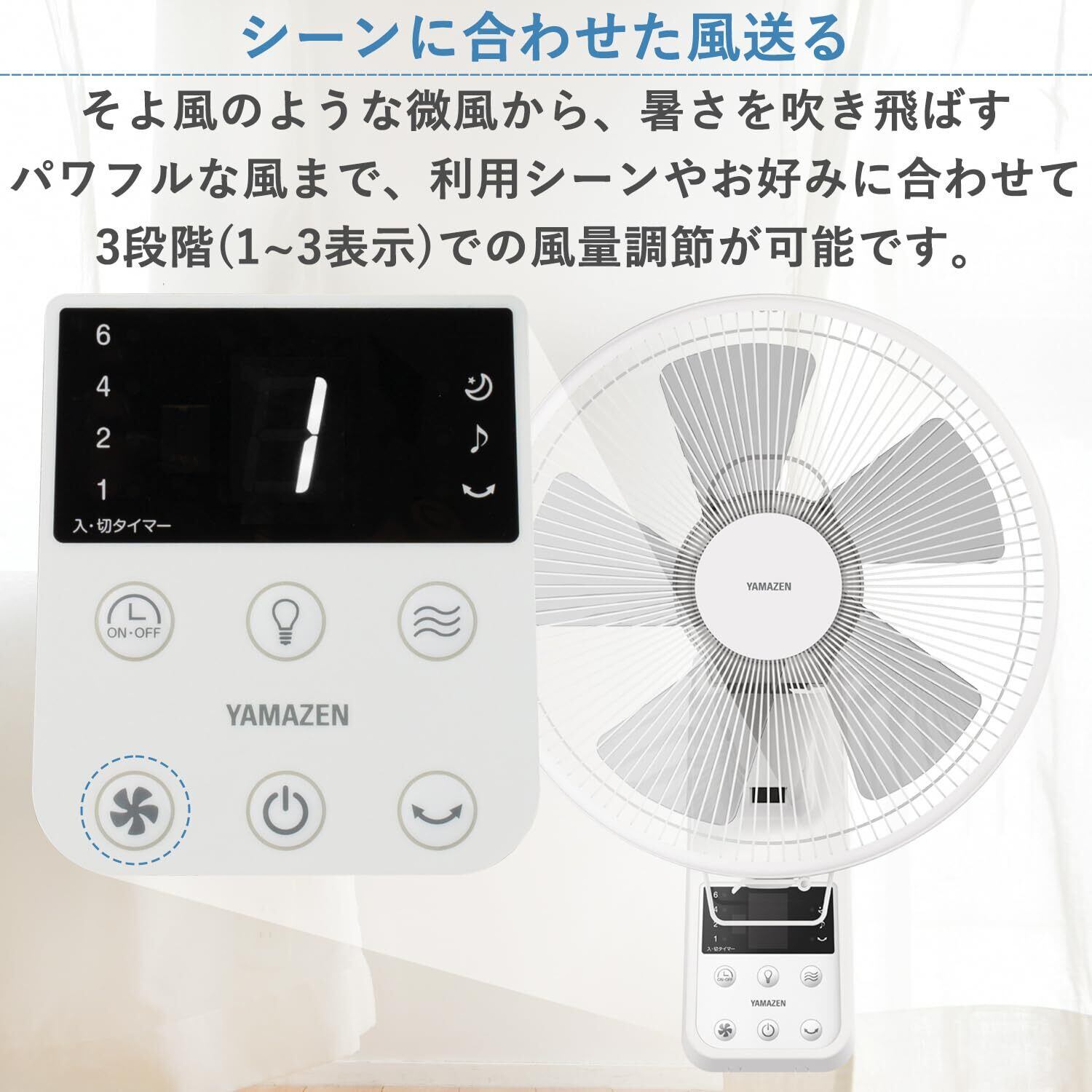●その日の気温や体調などシーンに合わせて3段階での風量調節が可能。