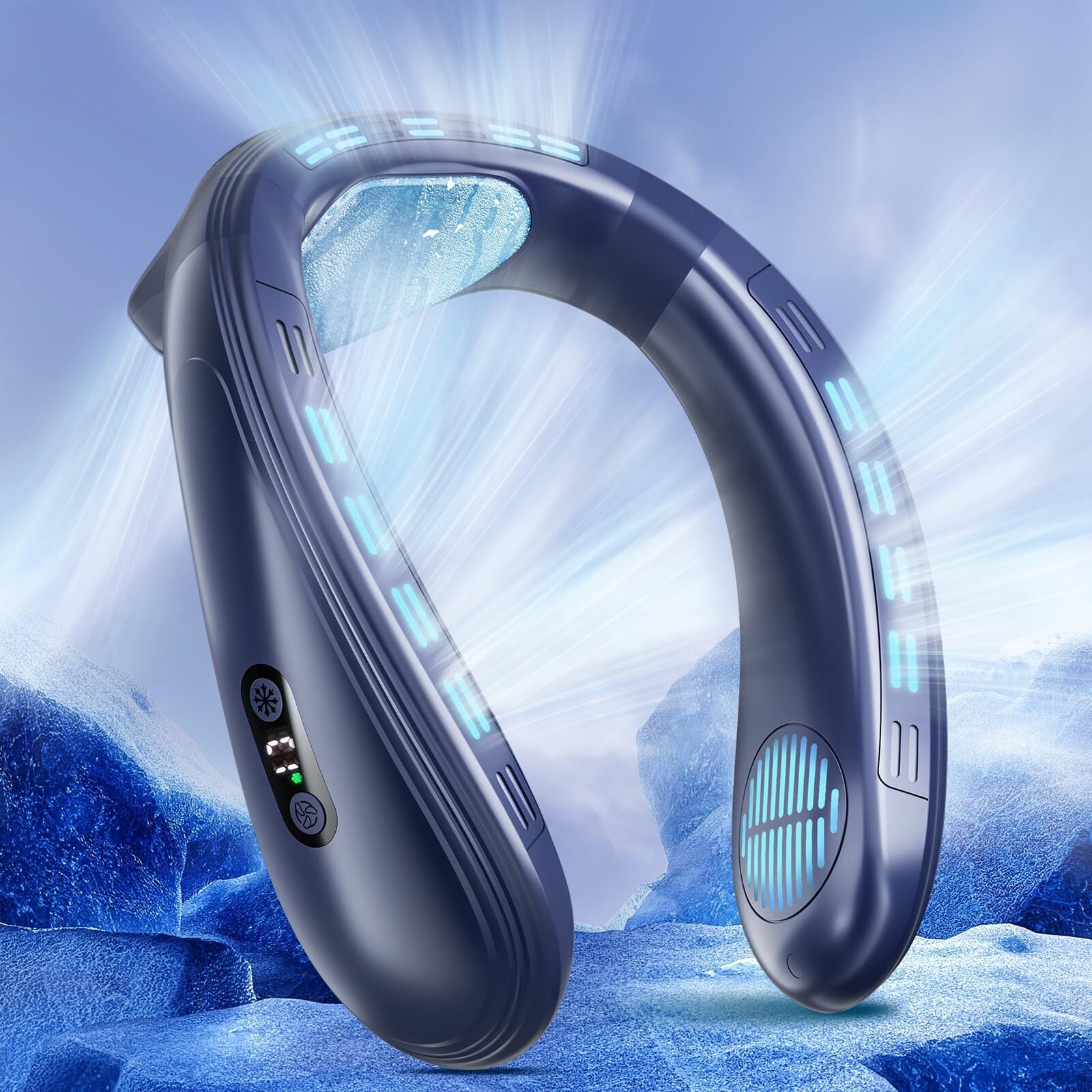 【在庫処分】首掛け扇風機 ネッククーラー 瞬間冷却【2024年新登場ネックファン 冷感 MAX-20℃】3段階風量&冷感調節 ハンディクーラー おしゃれ 上下方向送風 羽根なし 冷感首掛けファン 角度調節可能 半導体冷却プレート 8000mAh大容量 Type-c充電 送風&冷却 首掛けファン 静音 省エネ 携帯扇風機 LCD液晶ディスプレイ 熱中症対策/誕生日/プレゼント (ブルー)