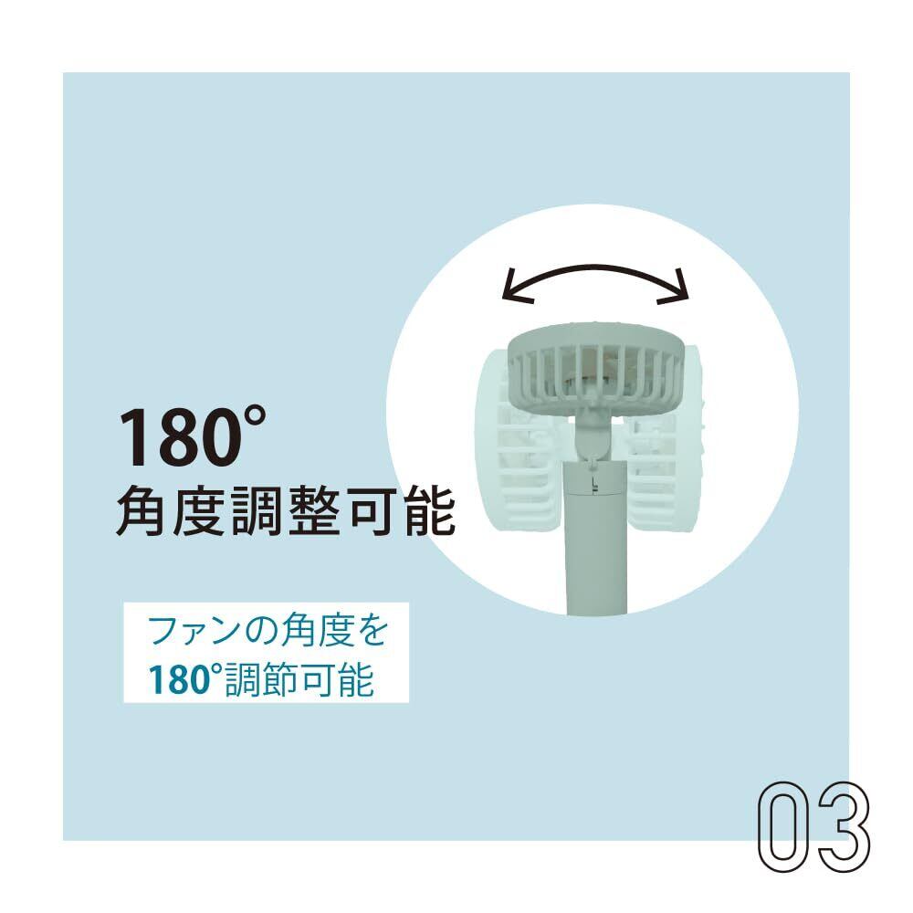 付属のストラップ使用でハンズフリー。スタンドを取り付けて卓上ファンに!