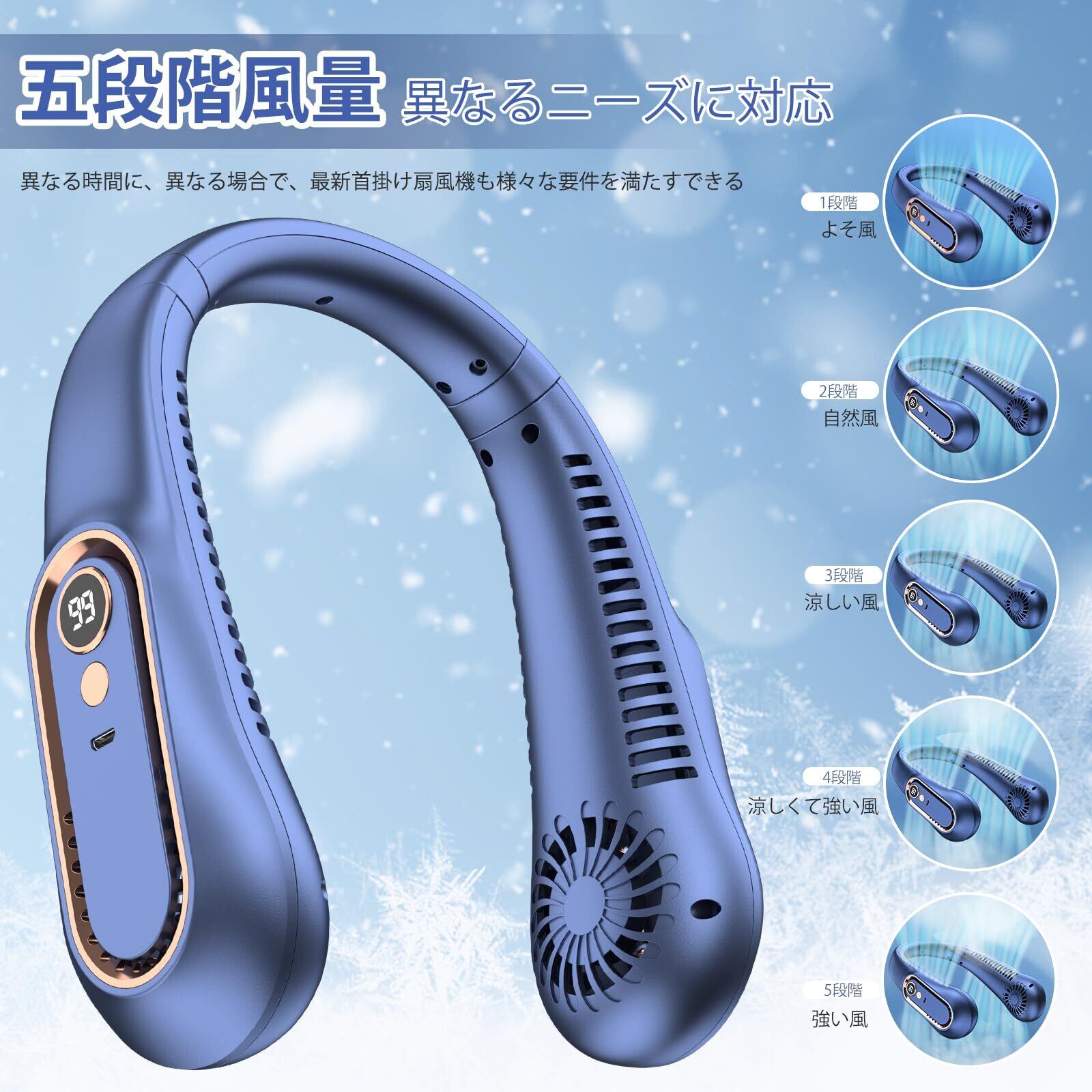 首掛け扇風機 携帯扇風機 大容量 ネッククーラー 羽根なし 両手解放 超軽量 3段階風量 USB充電 熱中症対策 低騒音 スポーツ 通勤 アウトドア