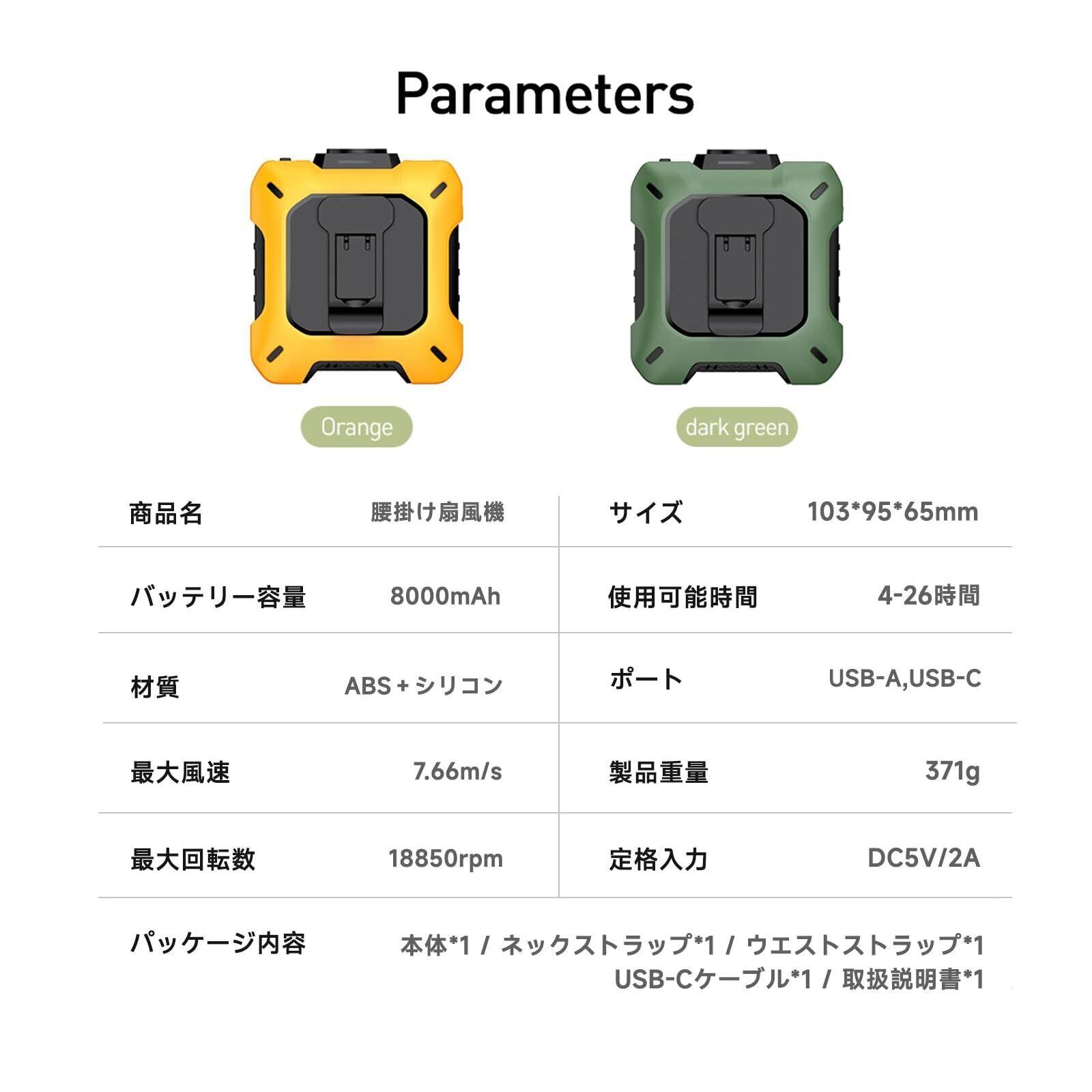 ViSSKO 腰掛け扇風機 強力 ベルトファン 【2025新型&1台5役】1-100風速無段階調整可能 8000mAh大容量 26時間動作 暴風レベル18850RPM ブラシレスモーター搭載 LED残電/風速段階表示 USB-C/USB-A対応 首掛け・腰掛け・卓上置き アウトドアスポーツ/屋外作業/熱中症対策-【日本語取扱説明書付き】-オレンジ