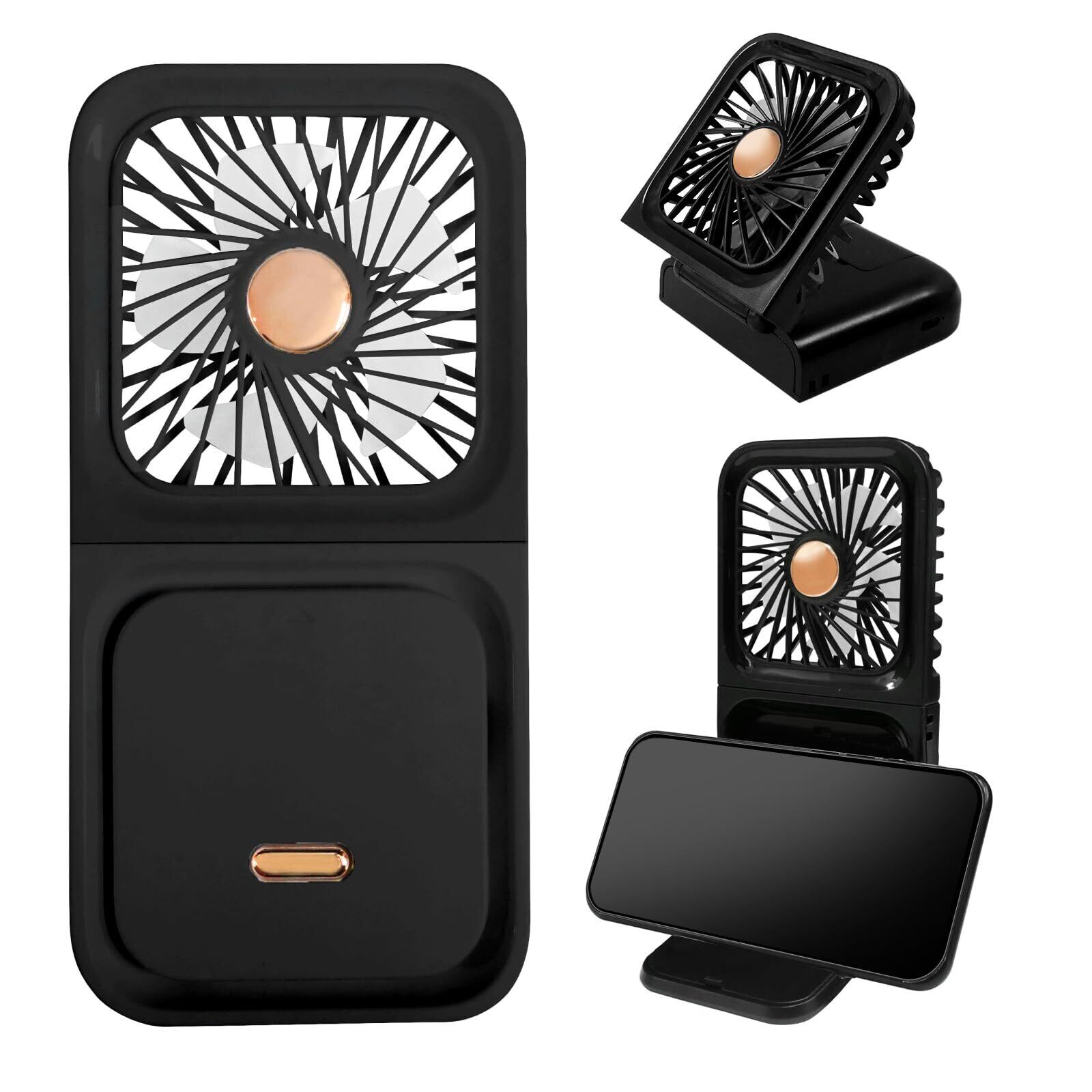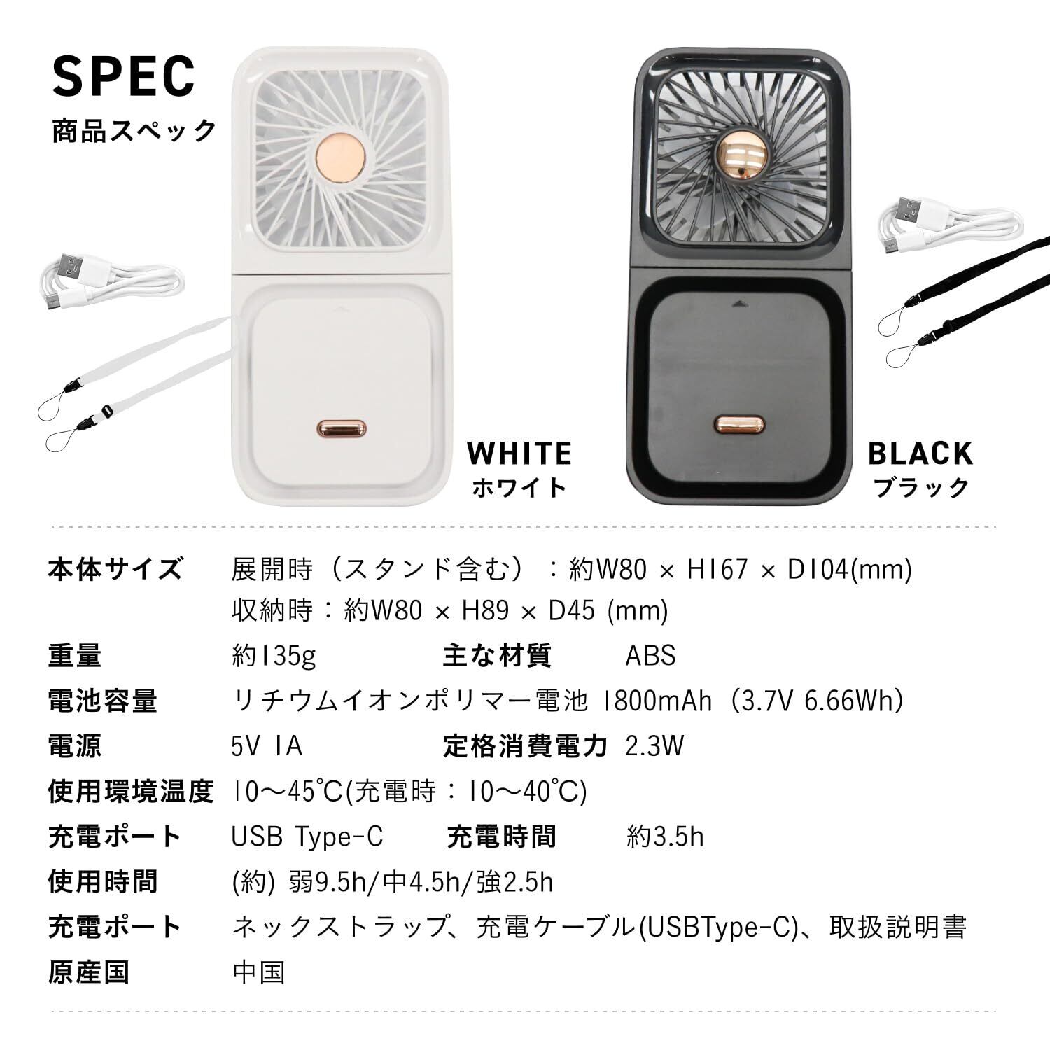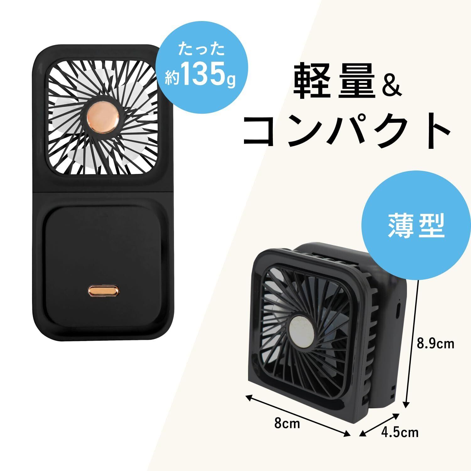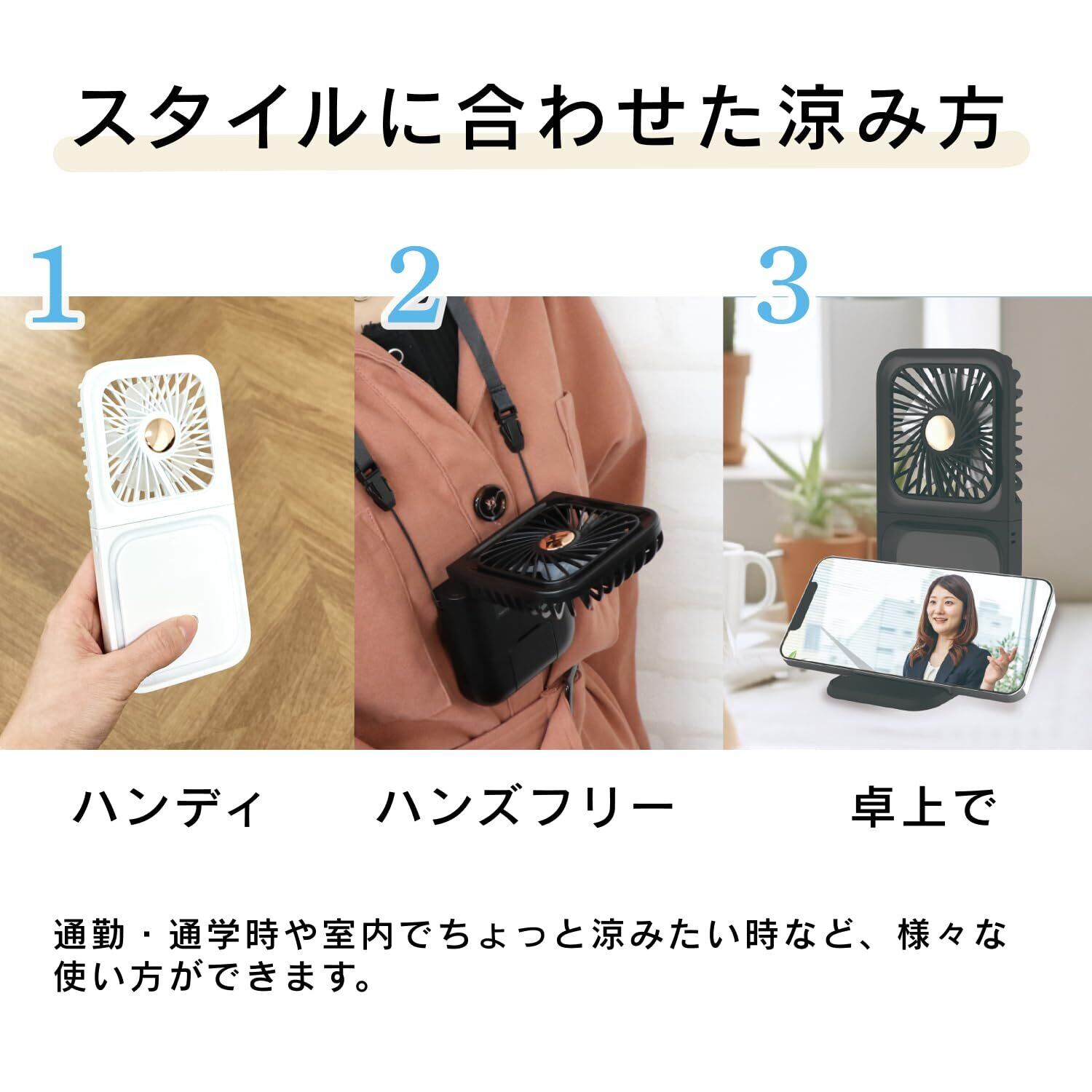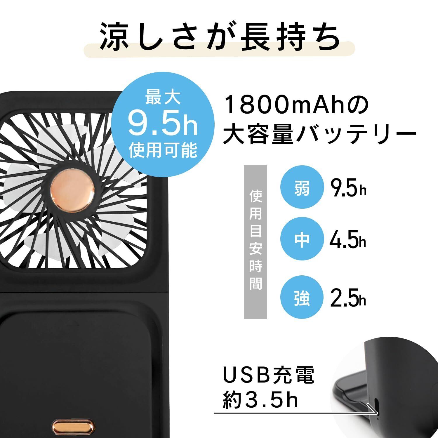 ハンディファン 小型 首かけ 強風 卓上 スマホスタンド 手持ち扇風機 静音 充電式 ブラック