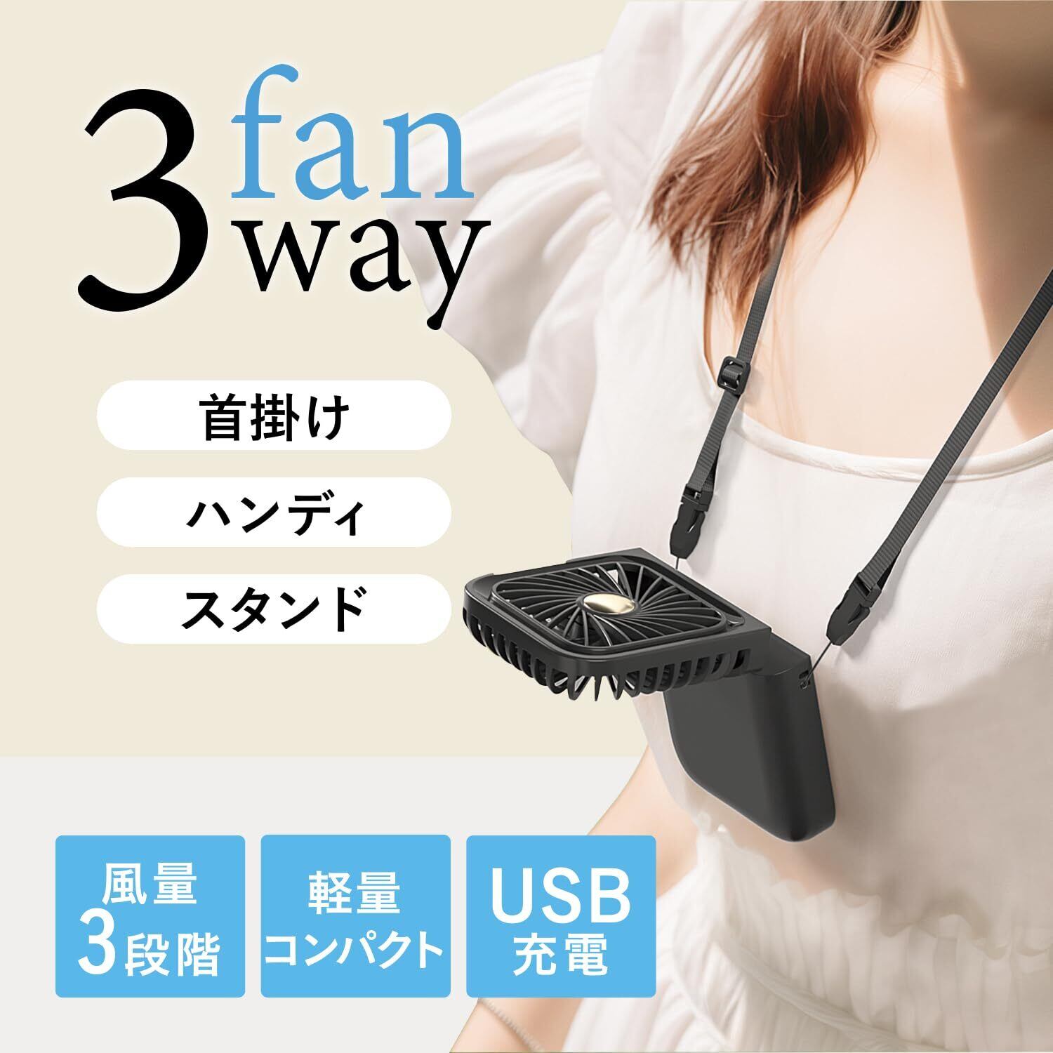 薄くてコンパクト!3WAYストラップ付き首かけファン