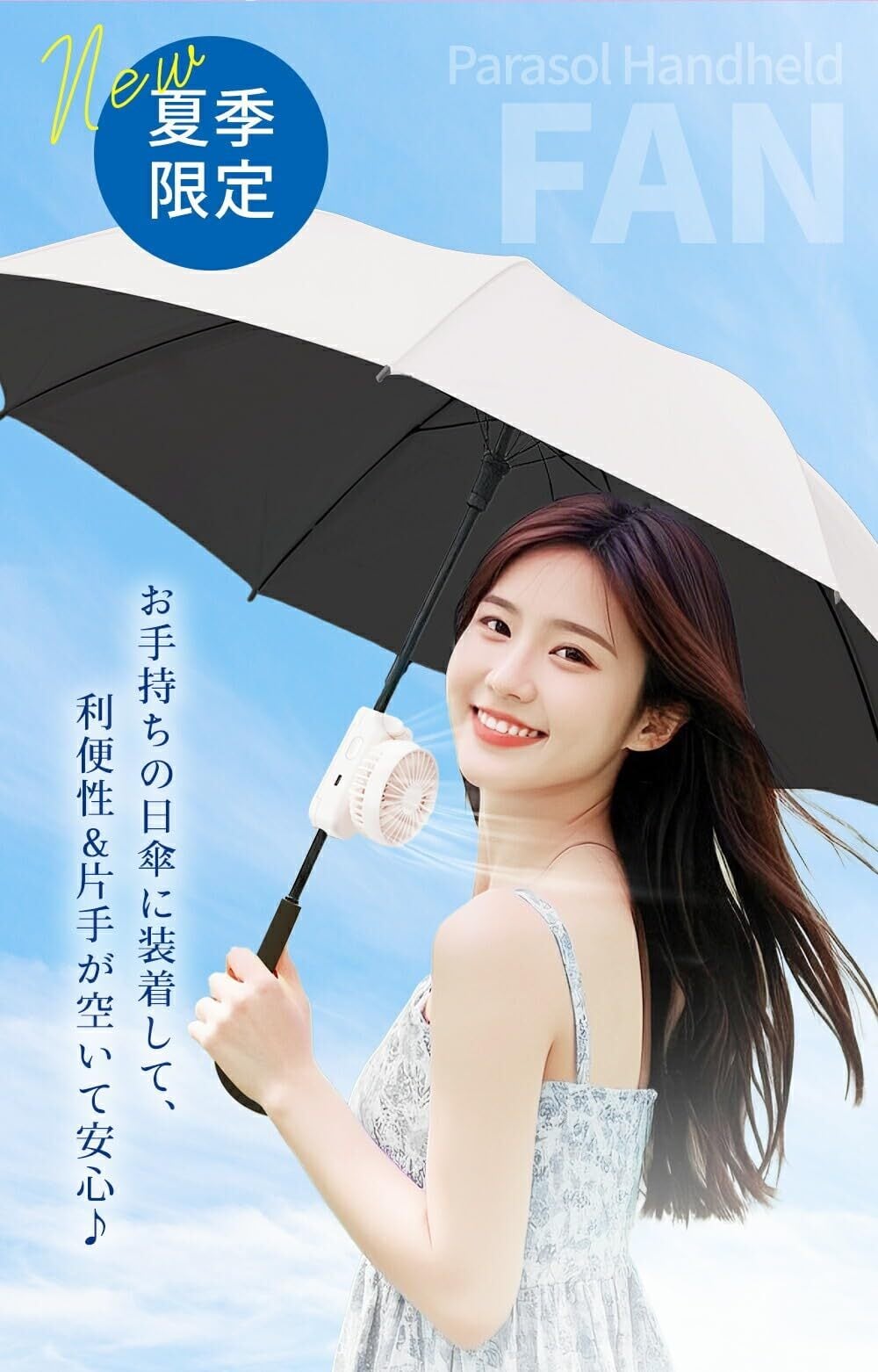 SNSで話題の小型扇風機!お手持ちの日傘に装着可能!?暑さ対策にSNSで話題の日傘ハンディファン!