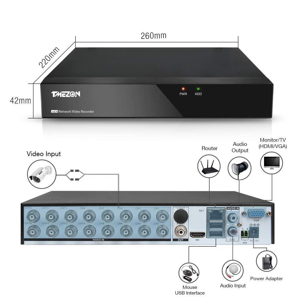 TMEZON 16CH 防犯録画機 防犯レコーダー ビデオレコーダー H.264ディジタルレコーダー 960H&720P/1080N DVR/NVR/HVR 5 in 1防犯レコーダー スマートフォン遠隔監視機能 録画機能搭載 PC スマートフォン遠隔監視機能 日本語システム(HDDなし)