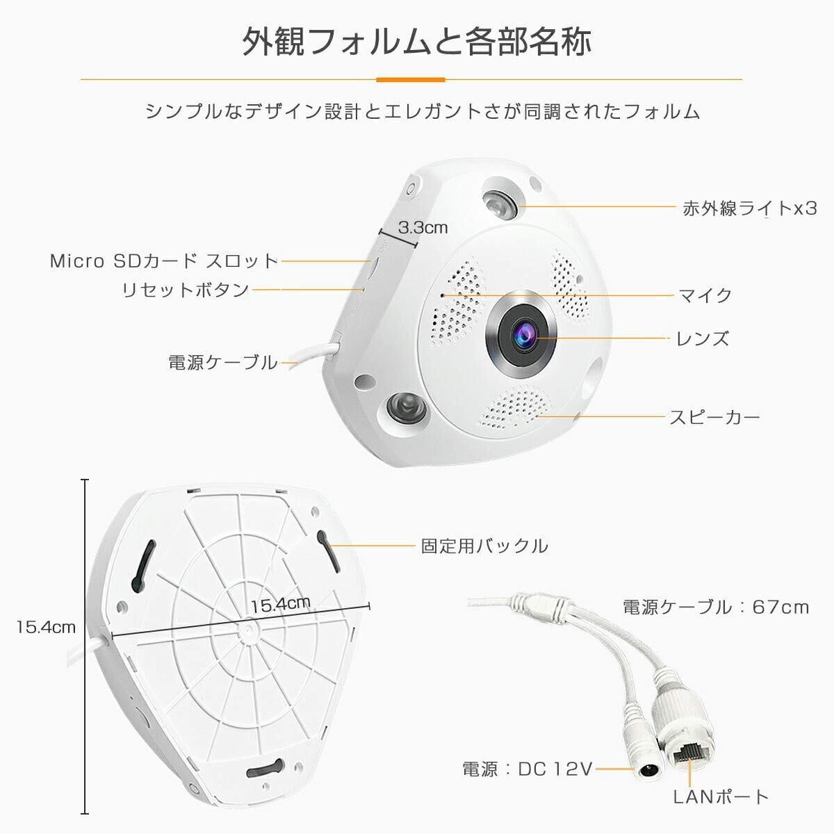 【2022最新】「C61S.A」防犯カメラ 屋内用 300万画素 ONVIF対応 ネットワークカメラ 魚眼レンズ 360度 全天球 FHD 1536P WIFI 無線 MicroSDカード録画 PSE 技適