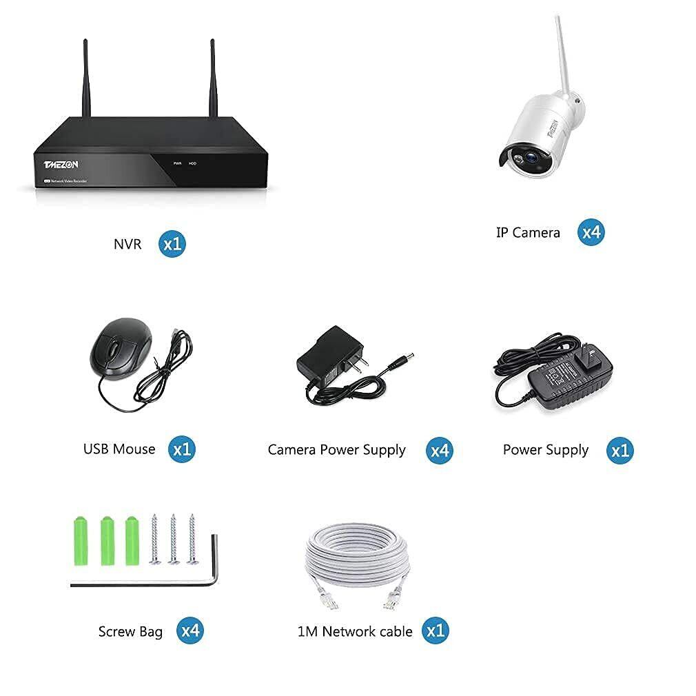 【在庫セール】ワイヤレス 防犯カメラセット TMEZON 300万画素 8chレコーダー ワイヤレス防犯カメラ 4台セット IP66防水防塵 屋外対応 屋外 ワイヤレス監視カメラ システム wifi スマホ PC遠隔監視 動体検知 暗視機能 日本語システム 日本語取扱説明書付き(4台300万画素+8CH NVR+NO HDD ) | paghag