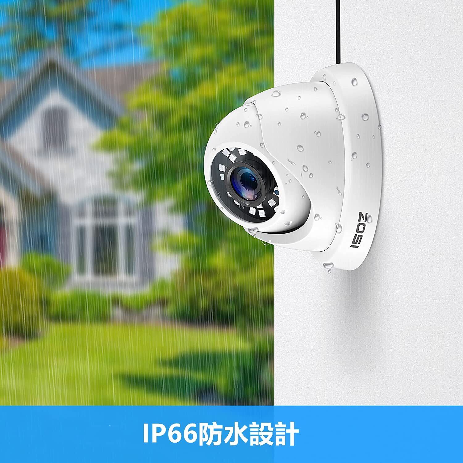 防水設計:IP66防水設計、防水防塵設計で屋外にも設置できるカメラなので、設定場所の幅が広がる