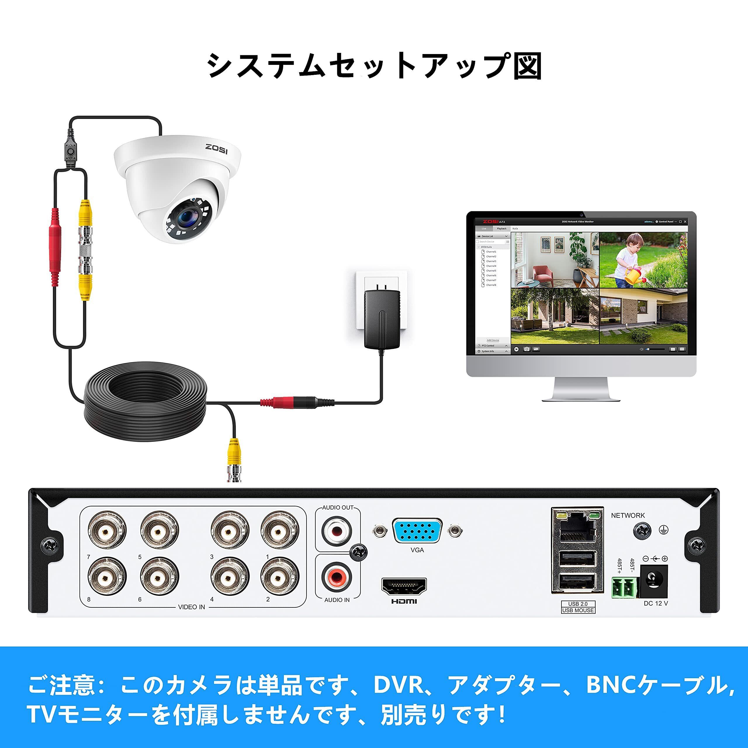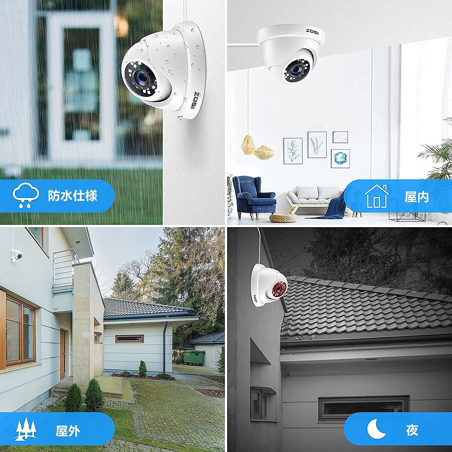 ZOSI 防犯カメラ 屋外 1080P 200万画素 アナログ/AHD/CVI/TVIカメラ 赤外線24個 3.6MM広いレンズ IP66防水仕様 960H/720P/1080P/5MP/4Kレコーダー対応