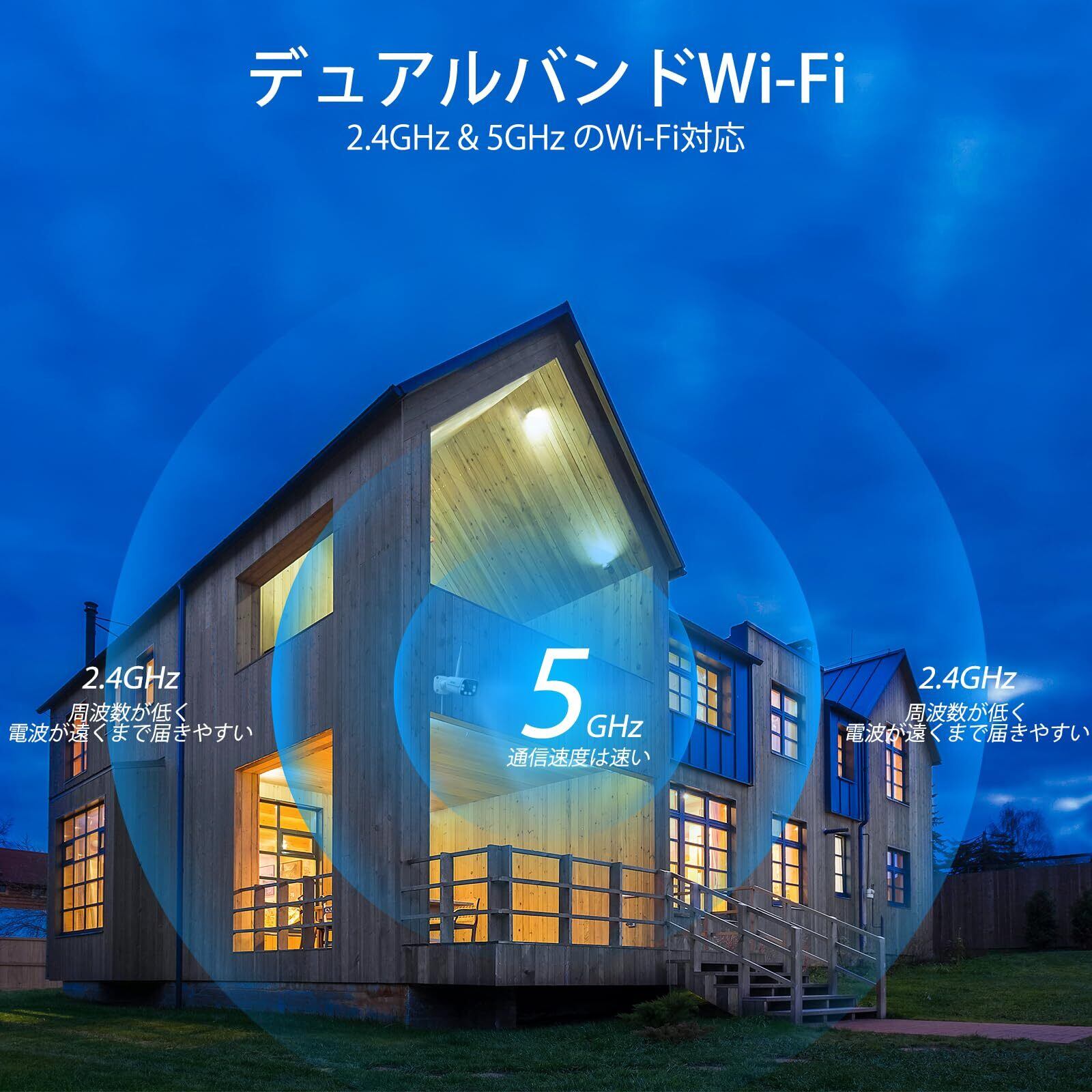 【2.4ghz・5ghz対応とwi-fiなくても使える】2.4gのWi-Fiは電波が遠くまで届きやすくて、5gのWi-Fiは高速かつ安定した通信が可能とのメリットがあります。2.4gと5g Wi-Fiに対応しているため、ネットワーク環境に合わせて柔軟に設置できます。SV3CのHXシリーズ屋外カメラはAPモードに対応しており、Wi-Fiなしでもライブ映像の閲覧や録画の再生は可能です(遠隔操作不可)。