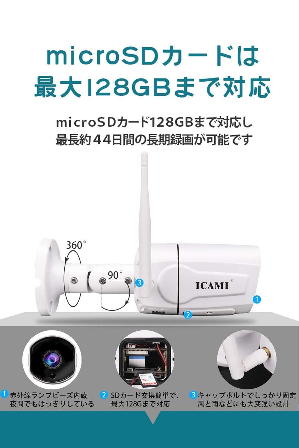 ▶【sdカード録画&遠隔監視】ICAMI ネットワークカメラが二つの録画技術を採用します。【1】カメラにSDカードを装着すれば(別途で購入)、映像をSDカードに録画することが出来ます。常時録画や動体検知等の機能に保存出来ます。(microSDカード最大128GB対応)【2】遠隔監視:距離がどんな離れていても、スマホ・タブレット・パソコンを使って(お家、ご両親、お子様、ペット、仕事場)全ての状況が把握出来ます。