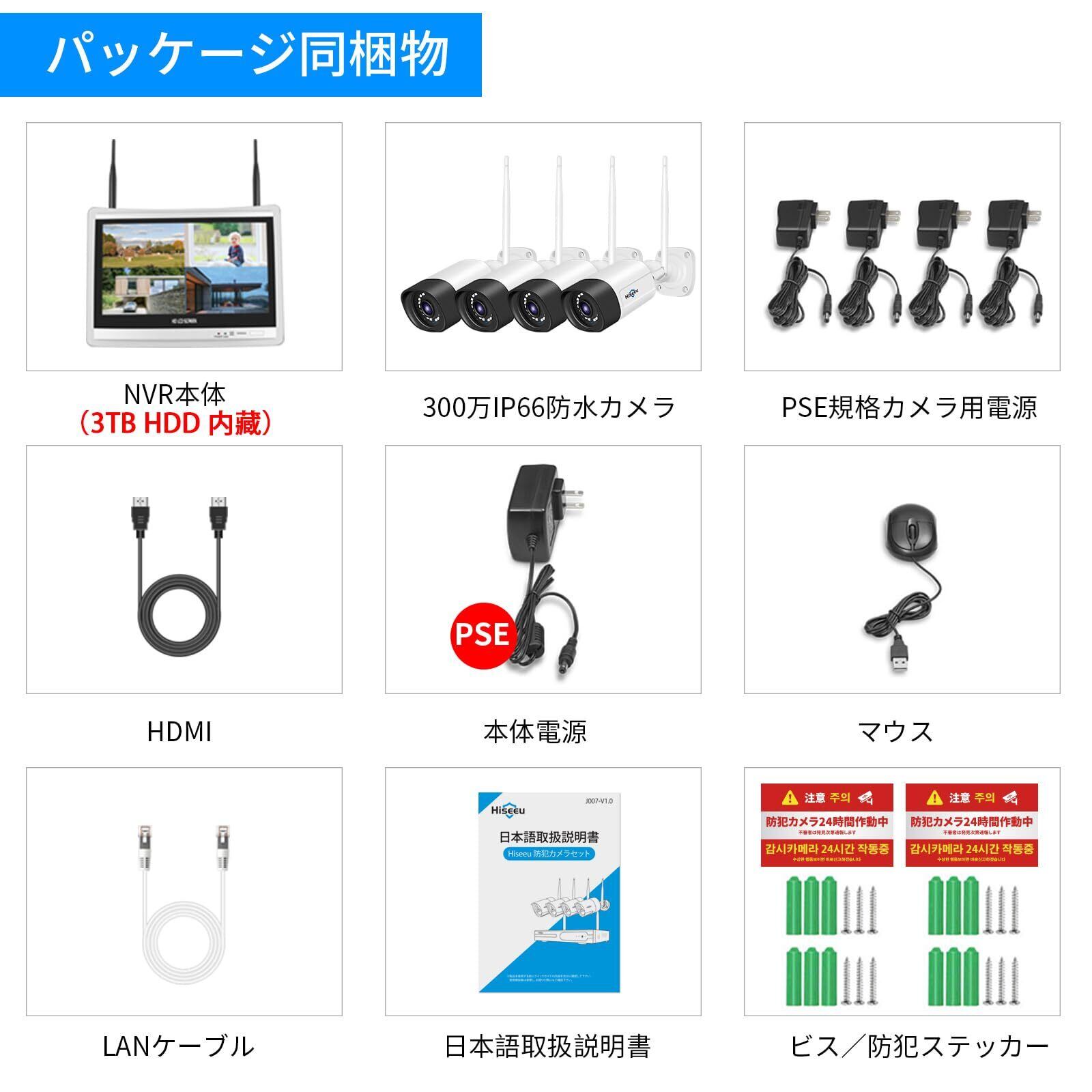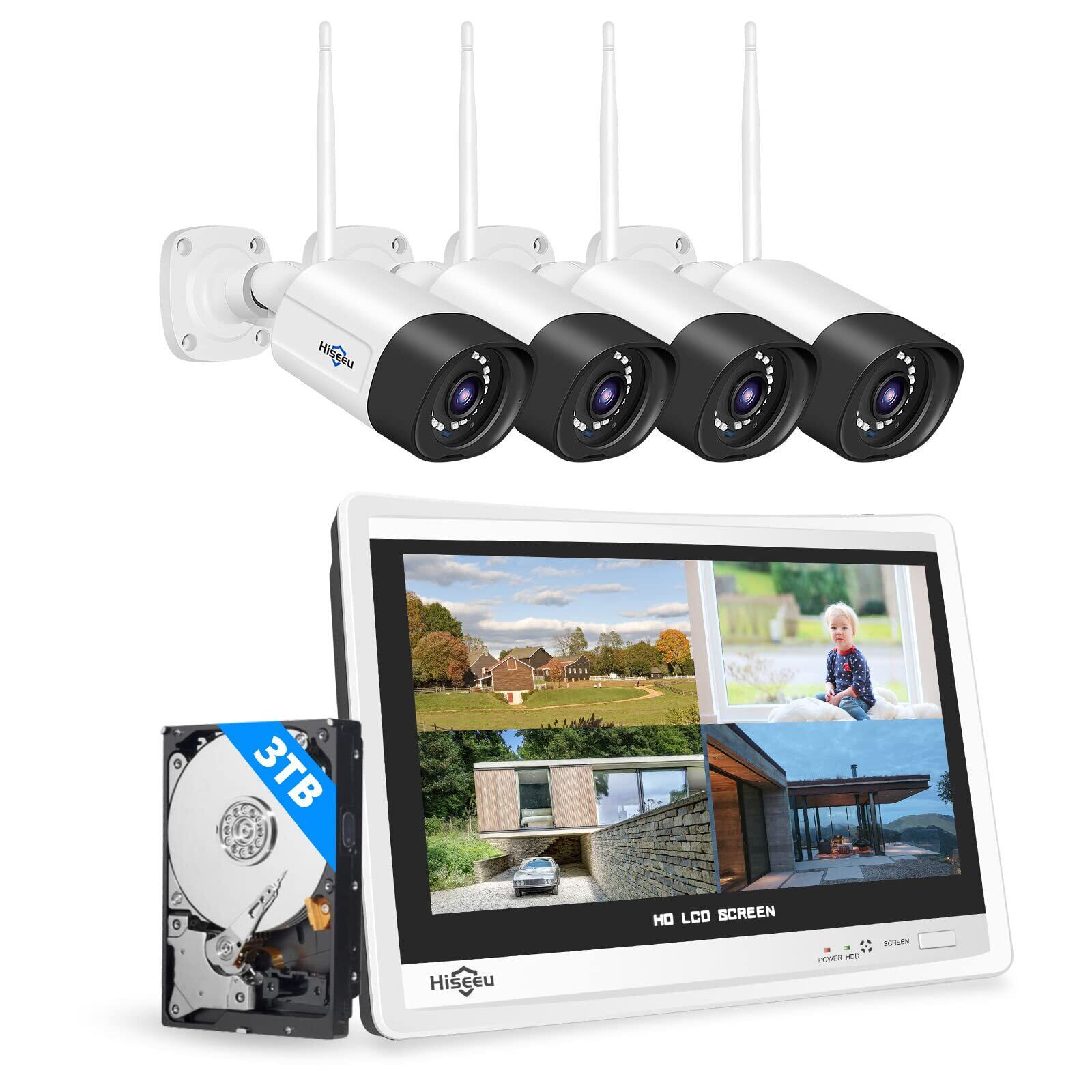 【在庫セール】【双方向の音声・3TB HDD内蔵 】防犯カメラ ワイヤレスHiseeu 12インチLCD液晶モニタ一体型NVR 1920P 500万画素ワイヤレスカメラ4台セット 10チャンネルまで増設可 遠隔監視 防水等級ip66 AI動体検知 屋内/屋外 セキュリティ 防犯カメラ (500万画素カメラ4台+12インチ液晶一体型NVR 3TBHDD内蔵) | paghag