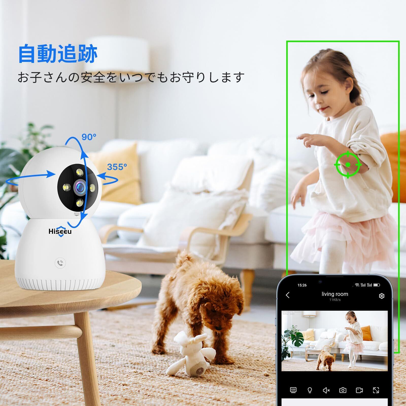 【500万画素&360°フルカバー】500万高解像度で、可動範囲は水平355°&垂直90°、さらに110°広角レンズを備え360°の視野を確保しました。さらに6個のLEDを搭載したこのPTZカメラは、完全な暗闇でも動きを検出すると鮮明に映像を表示します。Hiseeu屋内WiFiカメラは他の人と共有できるので、家族との素敵な思い出を楽しむことができます。