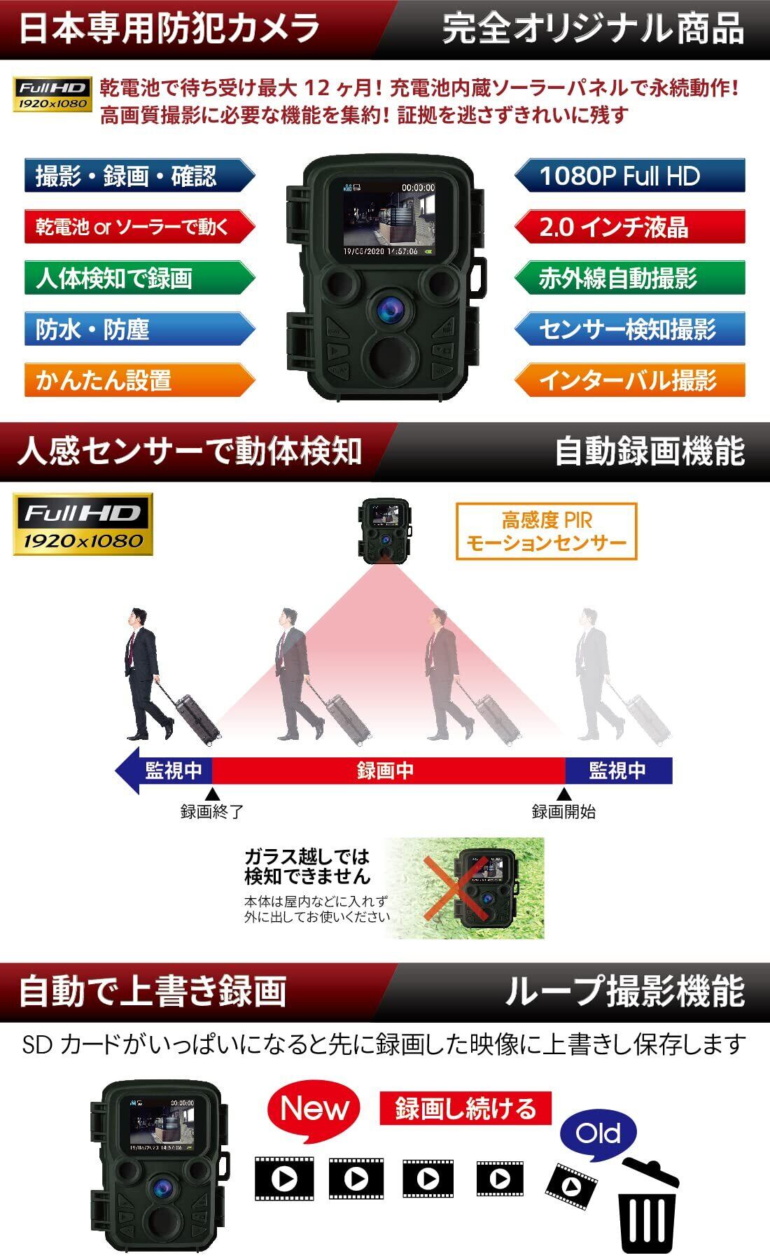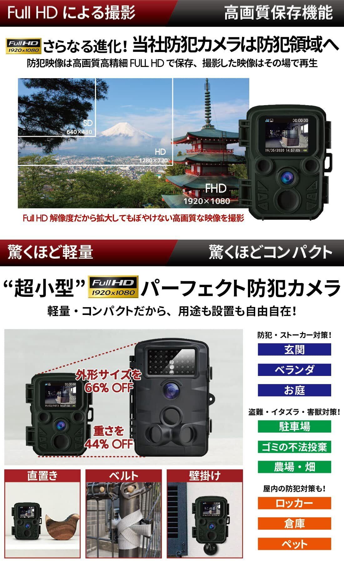 【特価セール】ハンファQセルズジャパン 【国内メーカー品】 Full HD 防犯カメラ トレイルカメラ 小型 屋外 防水 防塵 IP66対応 1080p対応 モーションのみ 赤外線LED 監視カメラ 動体検知 人感センサー 夜間対応 電池式 自動上書き録画 日本語説明書 国内メーカー品 迷彩 カモフラージュ 屋外 屋内 両用 | paghag