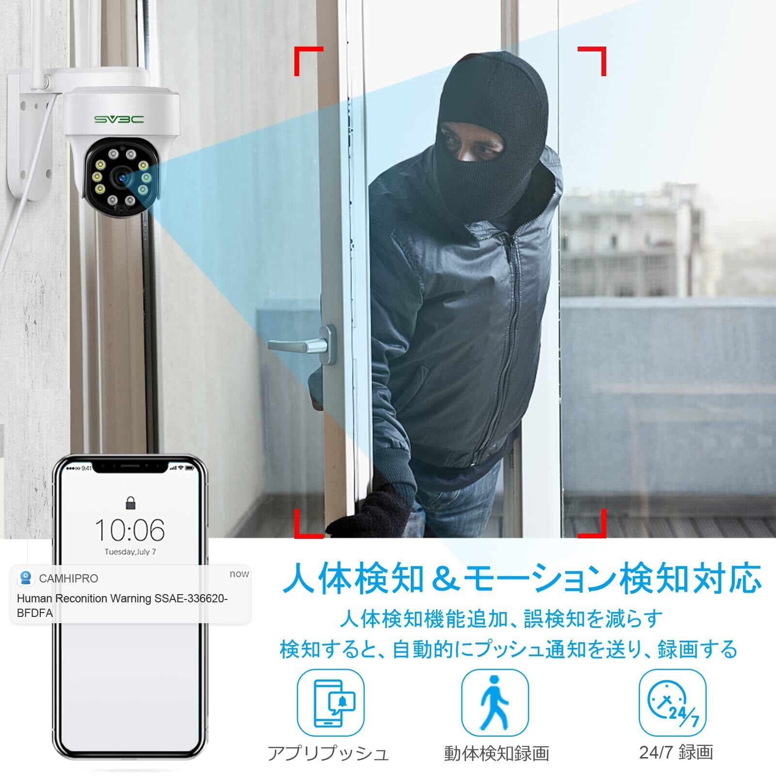 SV3C 防犯カメラ ワイヤレス 屋外 wifi 監視カメラ 人体検知 PT旋回 録画 双方向音声 200万画素