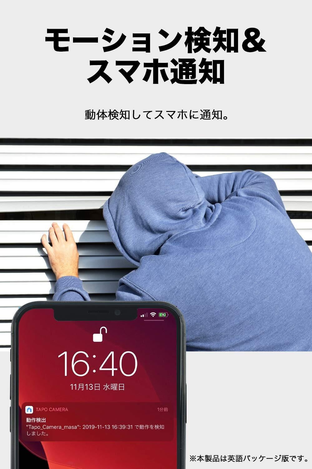 [特徴] ペットにも最適! スマホでかんたんに操作&確認可能な見守りカメラ。動体&音声検知など便利な機能群を搭載。本製品は英語パッケージ版となります。