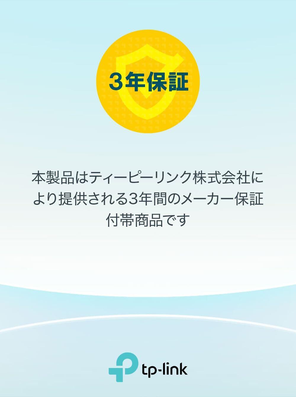 [メーカー保証3年] 本製品はティーピーリンク株式会社により提供される3年間のメーカー保証付帯商品です。