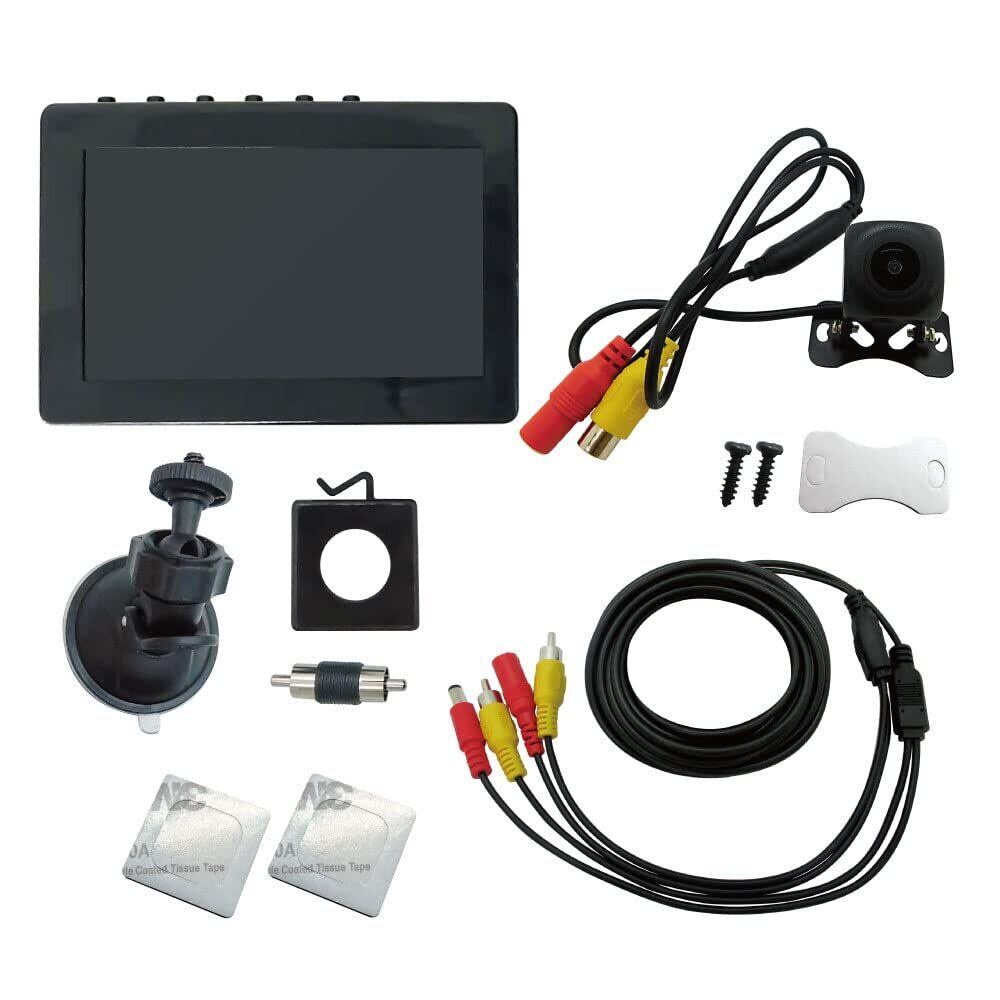 【製品仕様】セット内容:小型カメラ1個、4.5インチモニター、5mケーブル、電源アダプタ―、貼り付け用カバー・両面テープ カメラ仕様・・・信号形式:AHD、画素数:100万画素