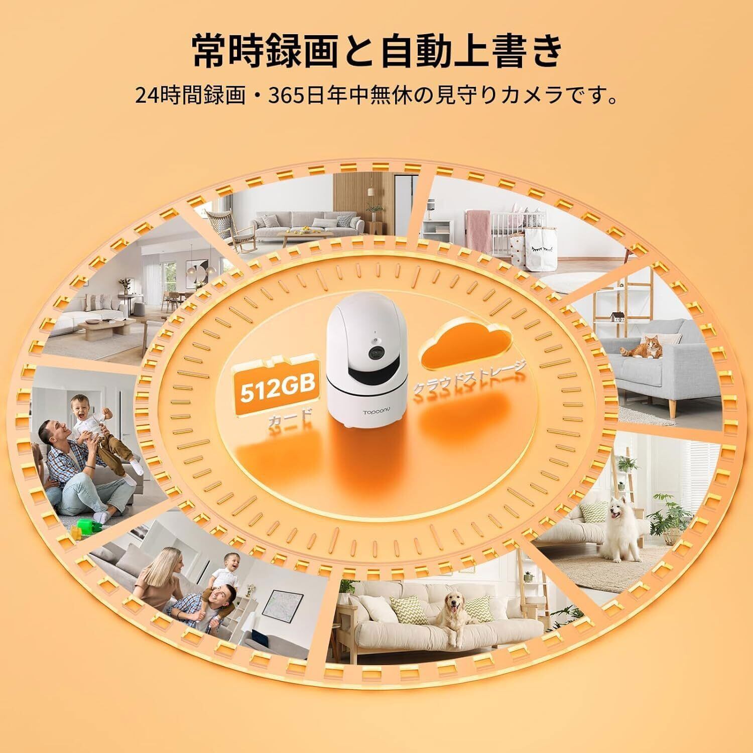 【24時間録画・自動上書き・SDカード/クラウドストレー対応】こちらの室内防犯カメラは、最大512GBのSDカード(別売り)と自動上書き機能に対応して、古いファイルに自動的に上書きしながら録画をするので、メモリ不足を心配する必要はありませんです。24時間常時録画・365日年中無休の監視カメラです。また、クラウドストレージ(有料)にも対応して、データのバックアップに使えて、データ管理とてもやすいです。(常時録画だけでなく、サウンド/モーション/人体の検知録画の設定も可能:サウンド/モーション/人体を検知すると自動に録画開始します。)(検知感度は手動で設定できます。)