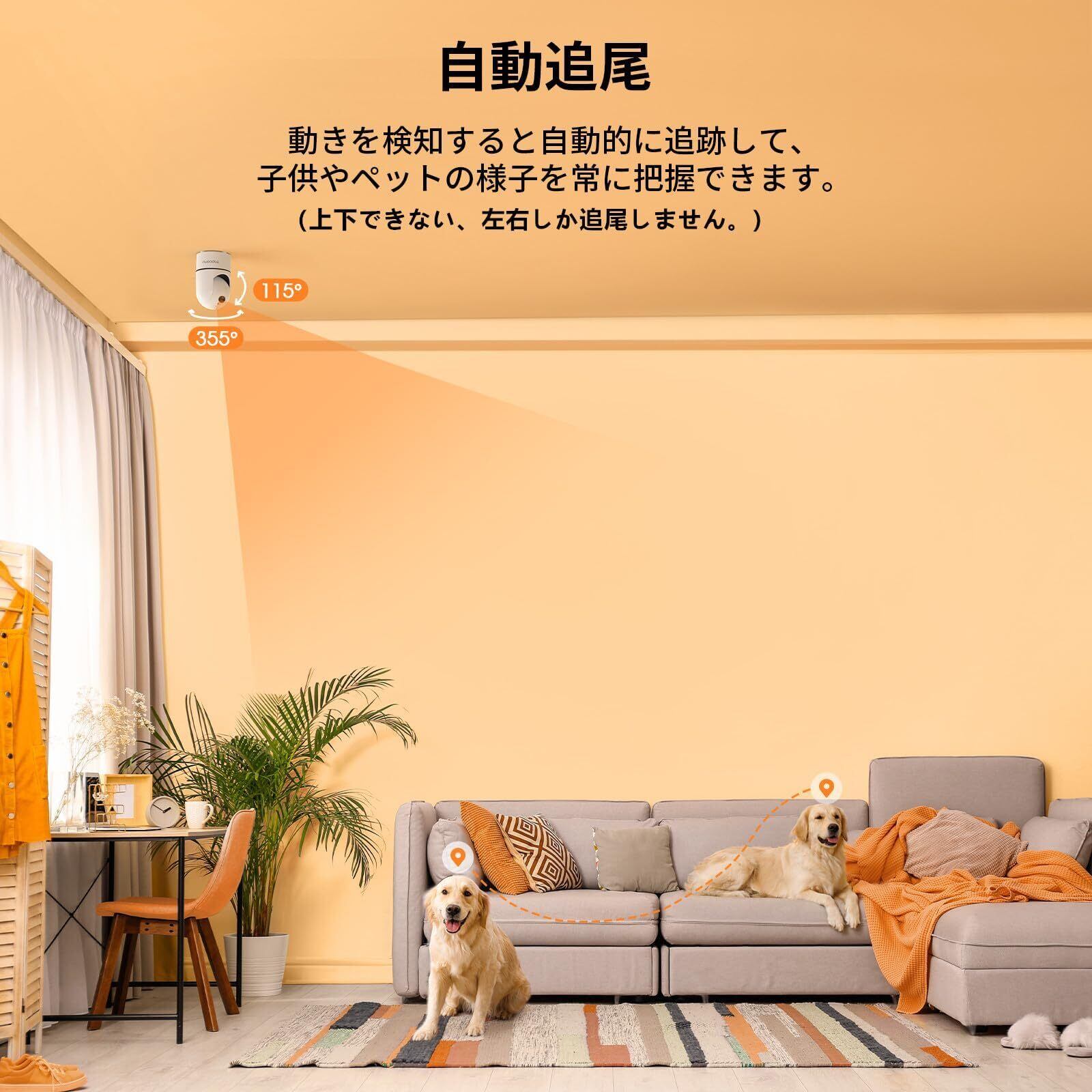 【360°全方位監視・スマホ連動・自動追尾・アラーム威嚇】この見守りカメラは、水平方向355°垂直方向115°のPTZ首振り機能、スマホ操作で遠隔からカメラの向きを変えることができます。いつでもどこでも、ペットや赤ちゃんの様子を把握できます。天井に取り付けることが可能なので、死角のない、部屋の隅々まで見渡せます。また、動きを検知すると自動に対象物を連続的に追跡しながらリアルタイムでアプリへ警報を送ります。(ご注意:上下できない、左右しか自動追尾しません。事前に追跡機能をオンにしてください。)その上に、2種類のアラーム機能を備えます。①手動アラーム:スマホで画面内の異常を見る時に手働に押すとアラームを鳴らして威嚇します。②自動アラーム(予めサイレンをオンにする必要):異常を検知すると、自動にアラームが鳴って威嚇し、不審者を撃退します。空き巣対策に効果的です。(iPhone、Android対応)(アプリ名:mipc、スマホのみ対応、パソコン対応不可)