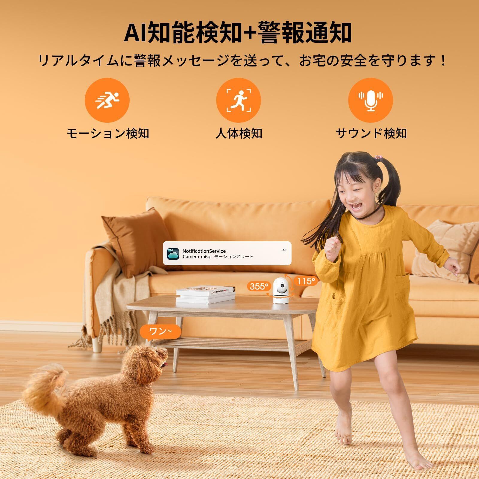 【2K高画質・優れた赤外線暗視撮影・8倍デジタルズーム】Topcony室内カメラは、先進的な1/2.9インチのカラ―CMOSセンサーを搭載し、f:3.6mmレンズと組み合わせることで、300万画素(2304×1296)の高精細映像を鮮明に捉え、ノイズを効果的に抑えながら、細部まで忠実に再現します。さらに、850nm波長の28MIL赤外線LEDを内蔵し、インテリジェントIRナイトビジョン技術を搭載しており、暗闇の中でも最長12メートル先の物体を鮮明に映し出します。また、8倍デジタルズーム機能も備えており、映像の細部を簡単に拡大可能。ご家庭の防犯、赤ちゃんの見守り、ペットの監視など、さまざまなシーンで活躍し、高画質映像とスマート機能で、安心・安全をしっかりサポートします。(ご注意:2.4GHz wifiのみ対応)(スムーズな動作を保証するために、設置場所を選ぶ際は、ネットワークの電波が強い場所を選んでください。)