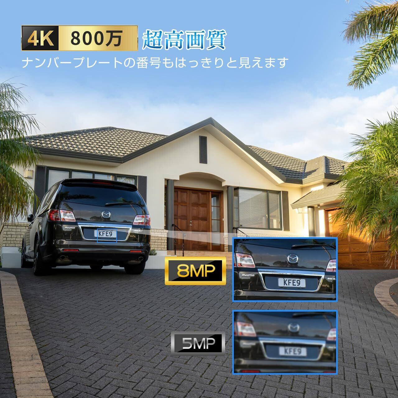SONYの高精細IMX415CMOSセンサーが搭載されて、4K(3840×2160)、800万超高画質撮影が可能です。映像の一部分を4倍デジタルズーム拡大した場合でも、人物の顔や文字などの細部が認識できます。事件やトラブルが起きた際でも証拠の確認が容易なため、証拠映像として活用でき、問題の早期解決に繋がります。