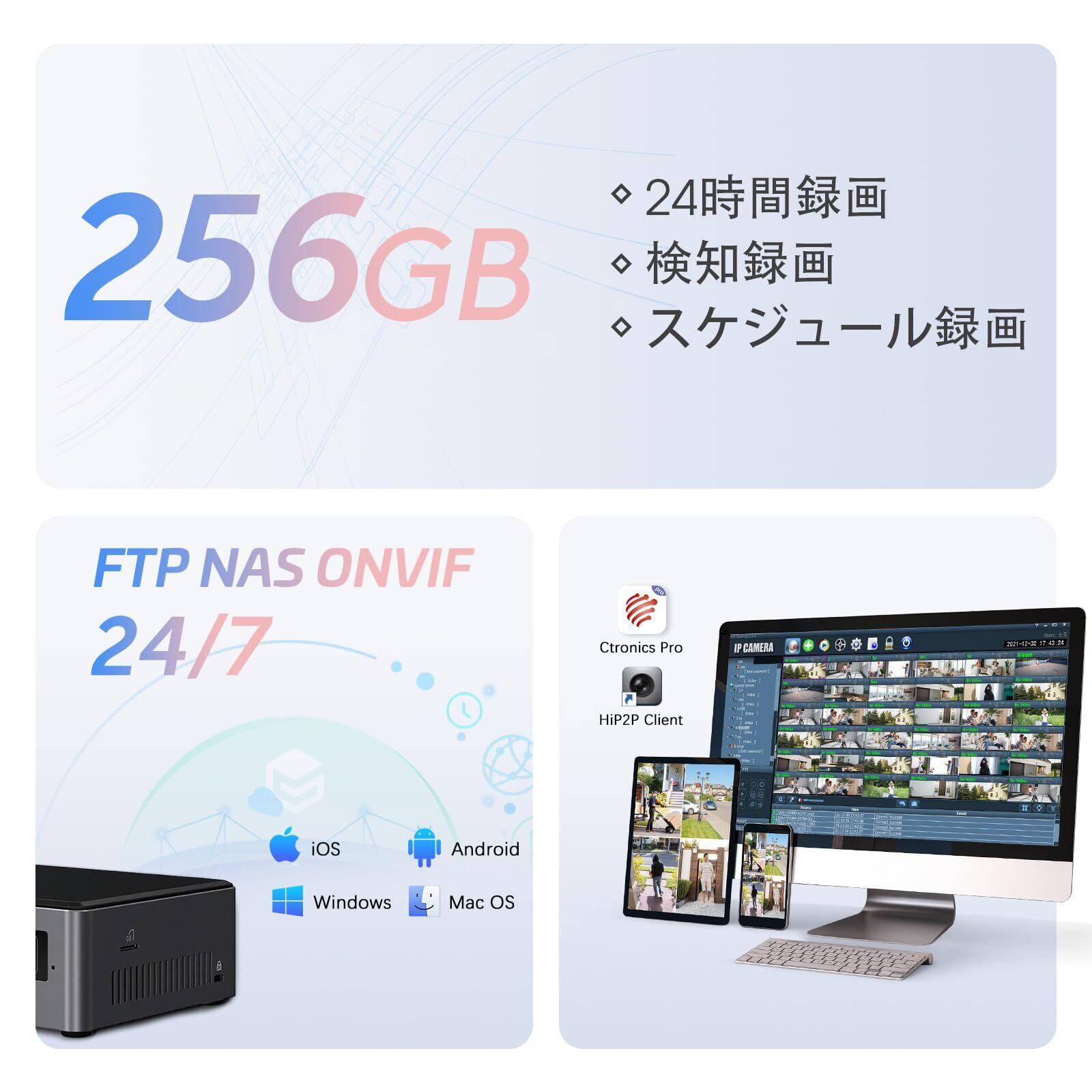 【4K・車両検知・5GWi-Fi対応】Ctronics 防犯カメラ 屋外 800万画素 監視カメラ AI人体検知 ペット検知 自動追跡 AI暗視機能 全日録画 スケジュール録画 256GBMicroSDカード対応 プリセット機能 プリキャプチャ 天井吊下げ 壁掛け 双方向会話 家族共有 ONVIF/NVR対応 FTP対応 iOS/Android/PC対応 IP66防水