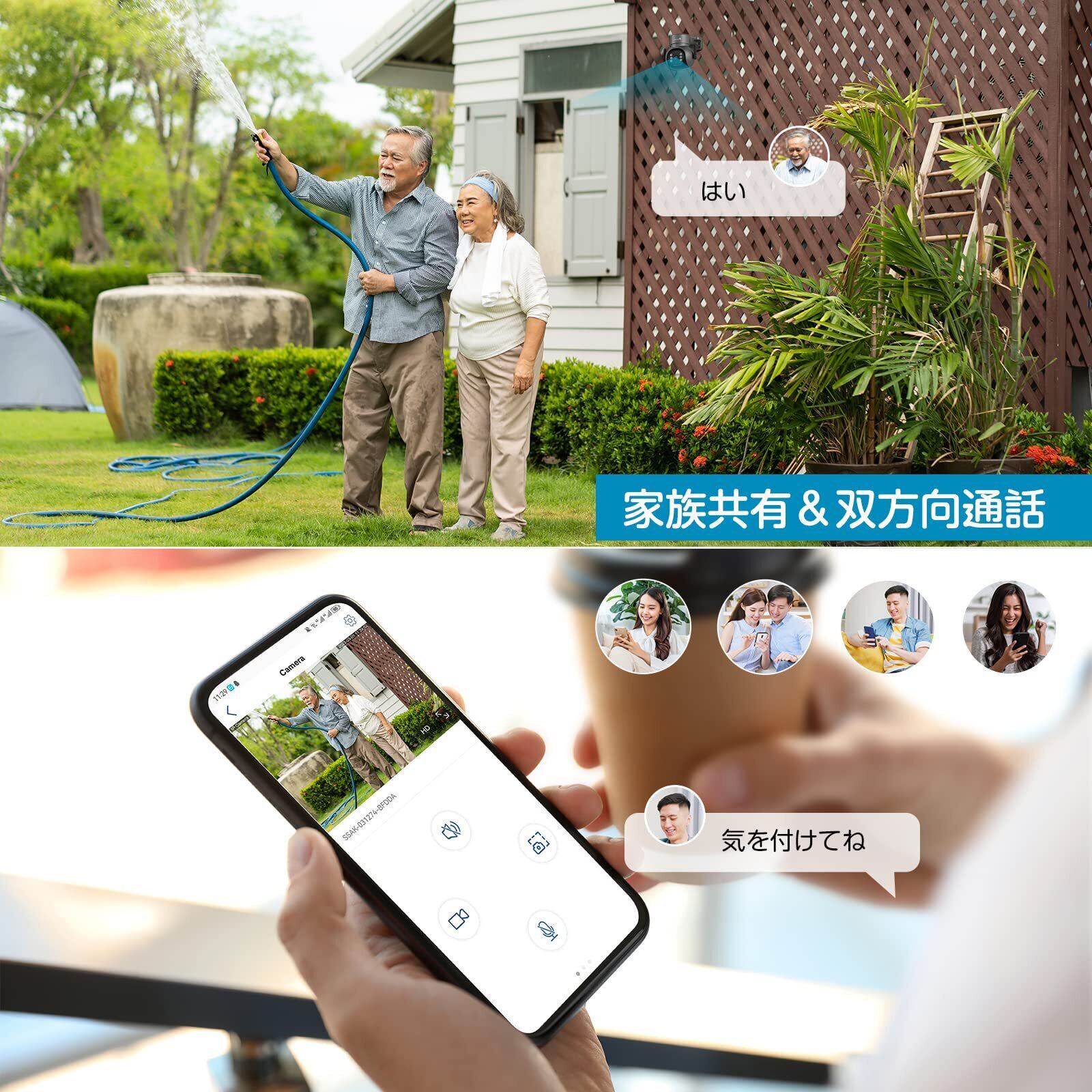PC、タブレット、スマホどれからでもアクセス可能です!高品質のスピーカーとマイクを内蔵して通話料金が要らない双方向会話の機能があります。アプリで簡単に家族と共有して遠隔操作ができます。アプリのダウンロードも無料です。防犯カメラは金属製のフロントカバーがあり、放熱性がよく、使用寿命が長いです。IP66防水防塵レベルの監視カメラは屋外で取り付けでも安心感がいっぱいです。24時間録画、モーション録画、ヒューマン検知録画とスケジュール録画機能があり、証拠の保存に重要な役割を果たします。